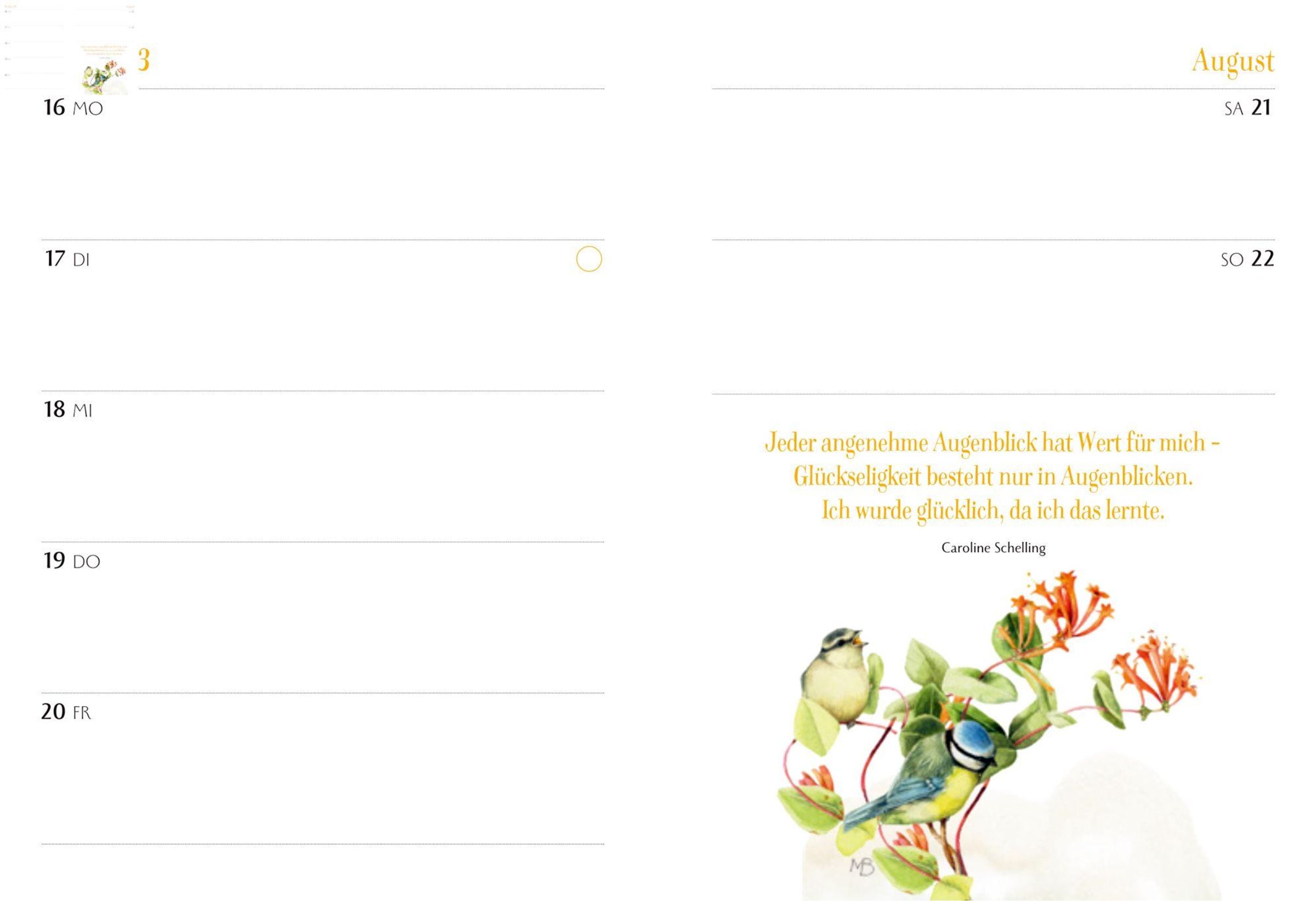 Wunderschön illustriert von Marjolein Bastin Handliches Format - perfekt für unterwegs Übersichtliches Kalendarium mit Sternzeichen, Mondphasen, Feiertagen und inspirierenden Aphorismen
