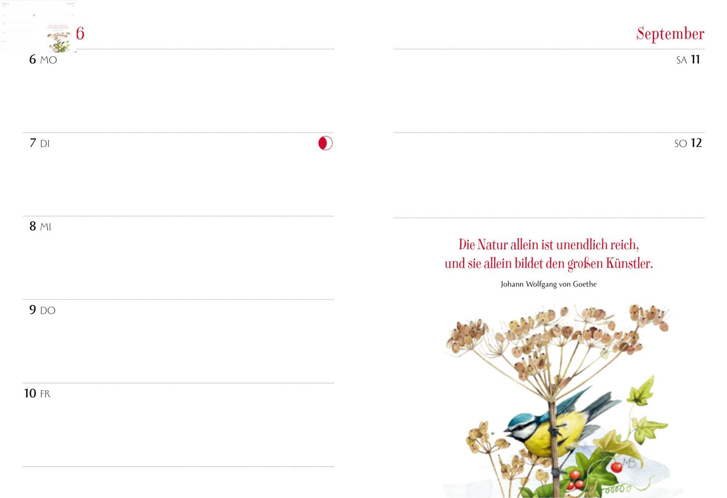 Wunderschön illustriert von Marjolein Bastin Handliches Format - perfekt für unterwegs Übersichtliches Kalendarium mit Sternzeichen, Mondphasen, Feiertagen und inspirierenden Aphorismen