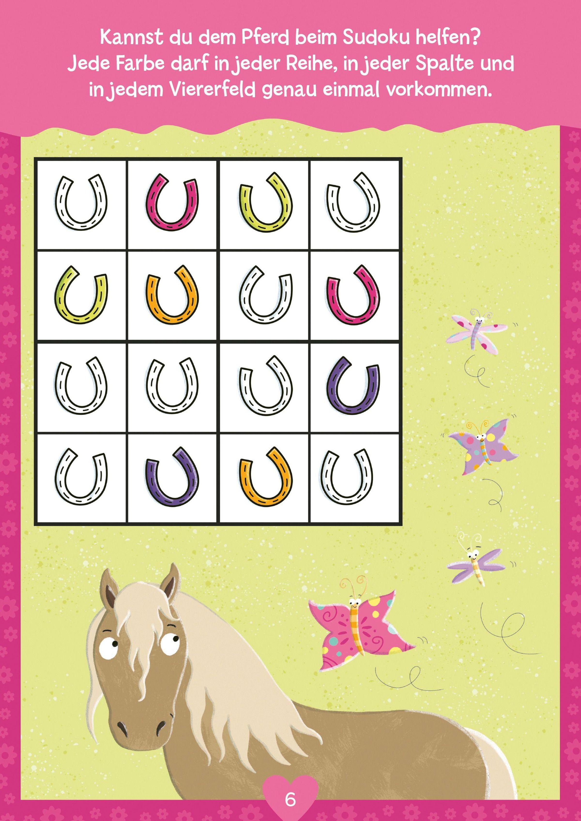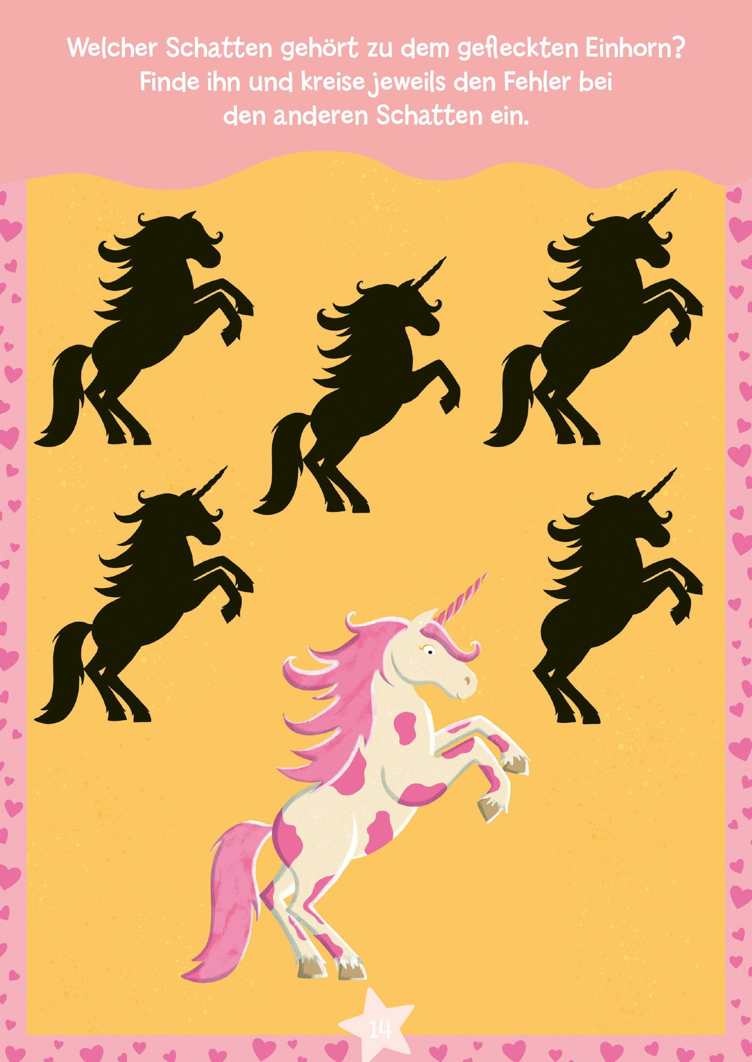 Rätseln, knobeln, entdecken - mit Pferden & Einhörnern! Dieses bunte Rätselheft begeistert Kinder ab 6 Jahren mit 96 Seiten voller abwechslungsreicher Aufgaben. Viele verschiedene Rätselarten sorgen für stundenlangen Spaß: Sudoku, Labyrinthe, Finde den Unterschied, Malen nach Symbolen, Schatten zuordnen, Nachspuren, Zählen, Logikreihen und vieles mehr. Die Rätsel sind kindgerecht gestaltet und steigern sich von leicht bis knifflig - so bleibt die Motivation lange erhalten. Neben Spaß und Abwechslung fördert das Heft ganz nebenbei Konzentration, Geduld und logisches Denken. Ob als Geschenk für Pferde- und Einhornfans, als Beschäftigung für Reisen oder als kreative Alternative zum Bildschirm: Mit diesem Rätselmix erleben Kinder viele magische Knobelstunden!