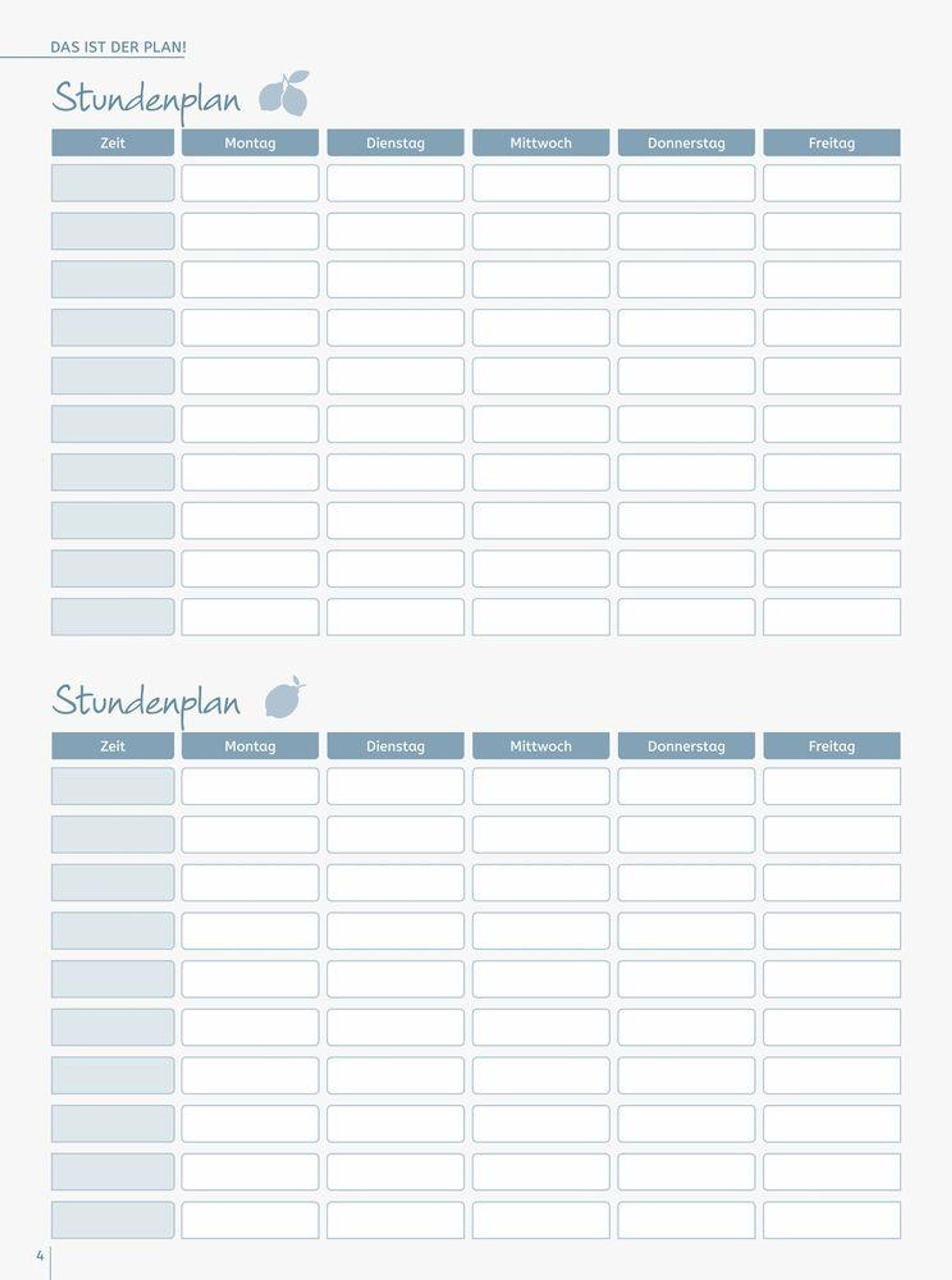 - übersichtlicher Wochenplan mit Platz für jede Schulstunde