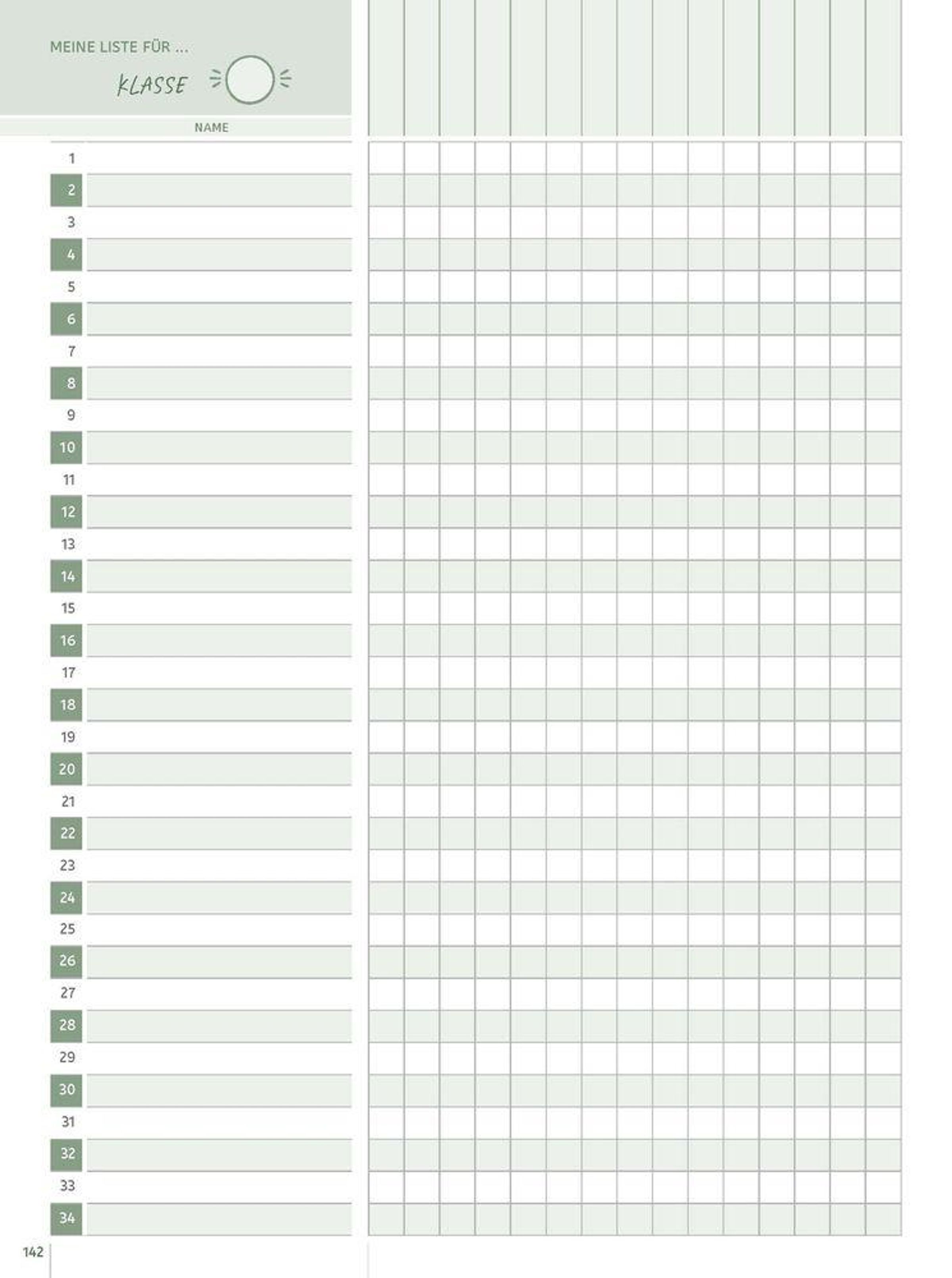 - inkl. 4 Lesebändchen, Verschlussgummi, Dreieckstasche und editierbarem Zusatzdownload mit Sitzplan, Klassen- und Notenlisten zum Ausdrucken