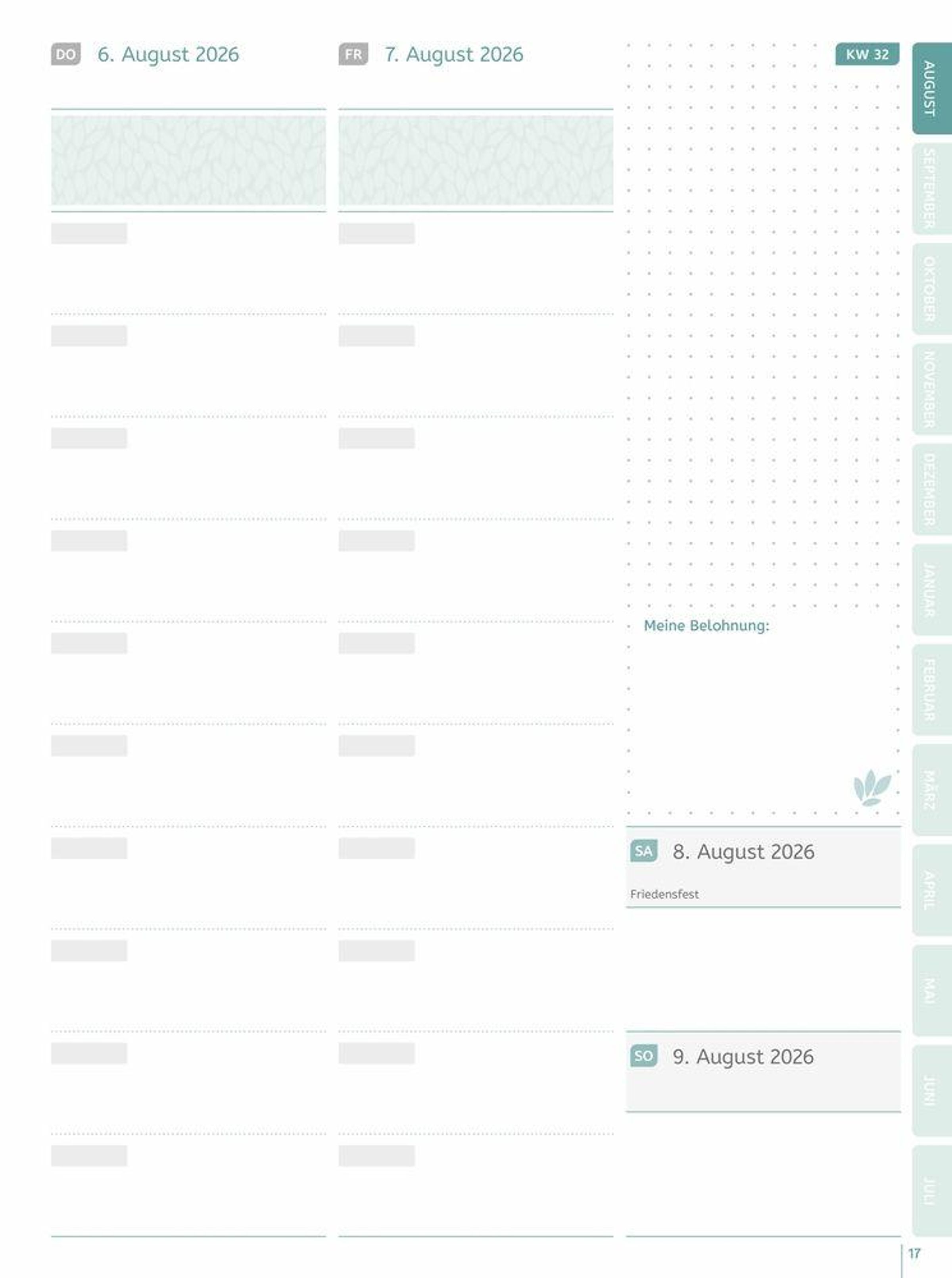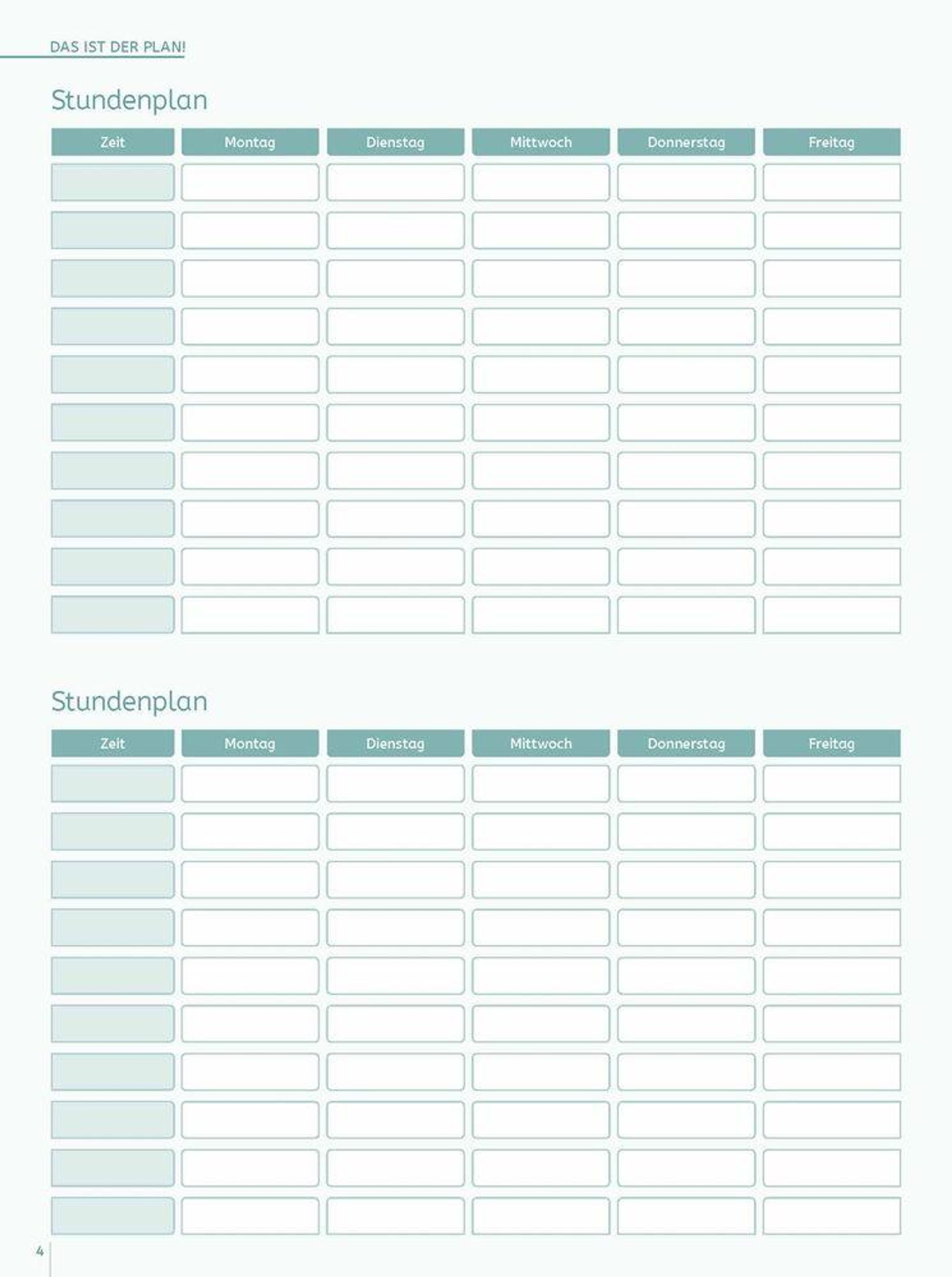 - übersichtlicher Wochenplan mit Platz für jede Schulstunde