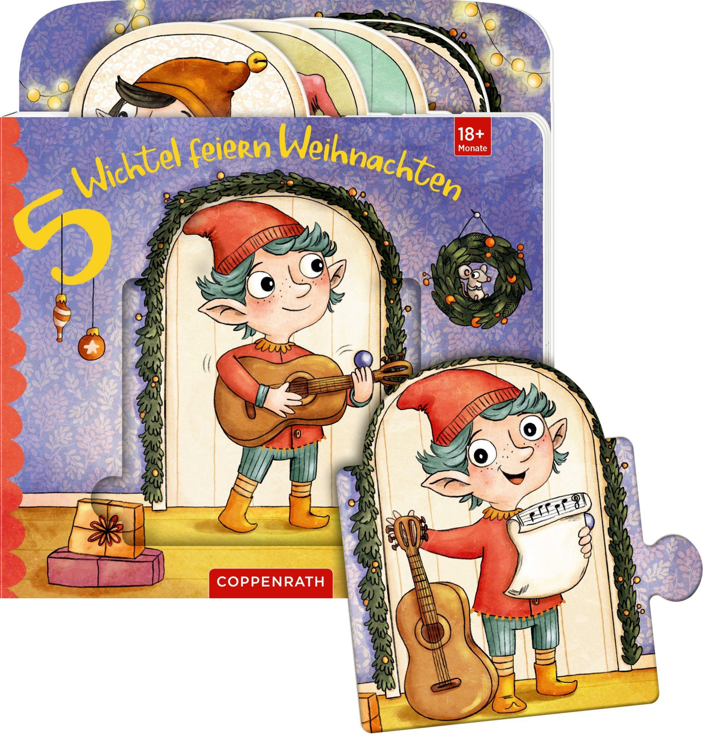 In diesem stimmungsvollen Weihnachts-Pappbilderbuch begleiten Kinder ab 18 Monaten fünf kleine Wichtel auf dem Weg zu einer fröhlichen Weihnachtsfeier. Jeder Wichtel bringt eine besondere Überraschung mit. Was sich dahinter verbirgt, entdecken kleine Leserinnen und Leser spielerisch unter den herausnehmbaren Puzzleteilen. Beim Herausnehmen und Zusammensetzen entsteht eine kleine Puzzle-Reihe, die ganz nebenbei Feinmotorik, Konzentration und erstes Zahlenverständnis fördert. Dieses liebevoll gestaltete Mitmachbuch sorgt für gemütliche Vorlesemomente in der Adventszeit und ist ein besonderes Weihnachtsgeschenk für kleine Kinder.