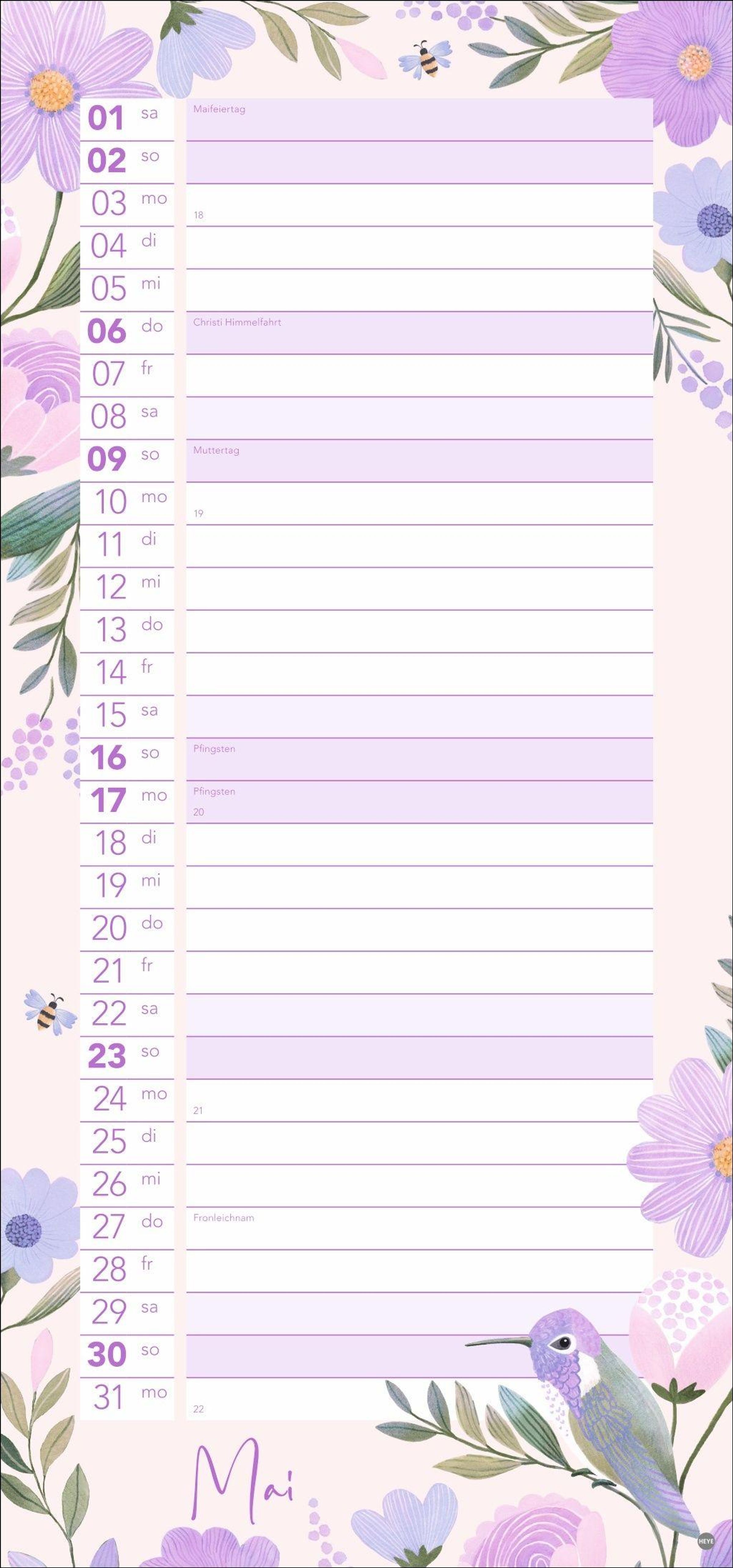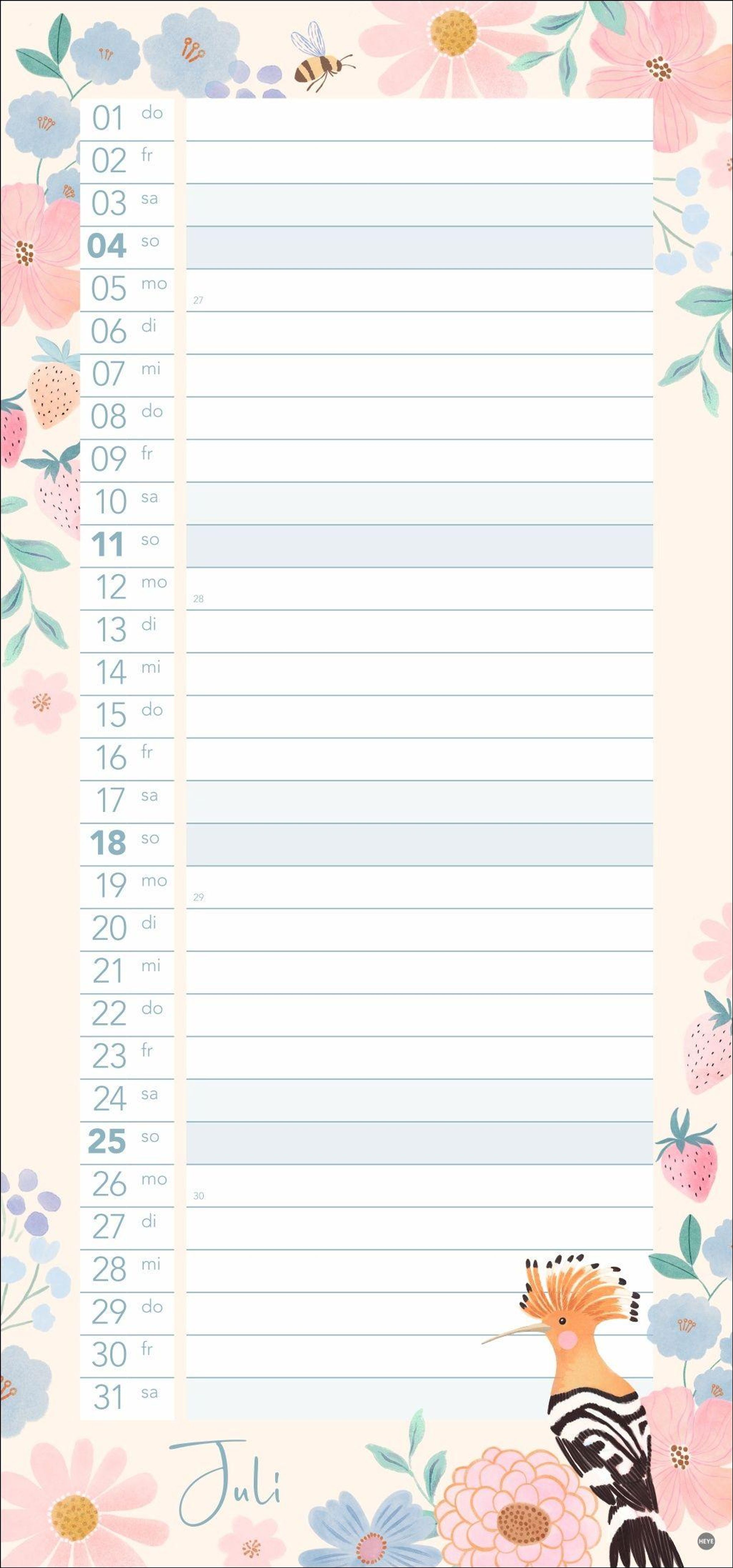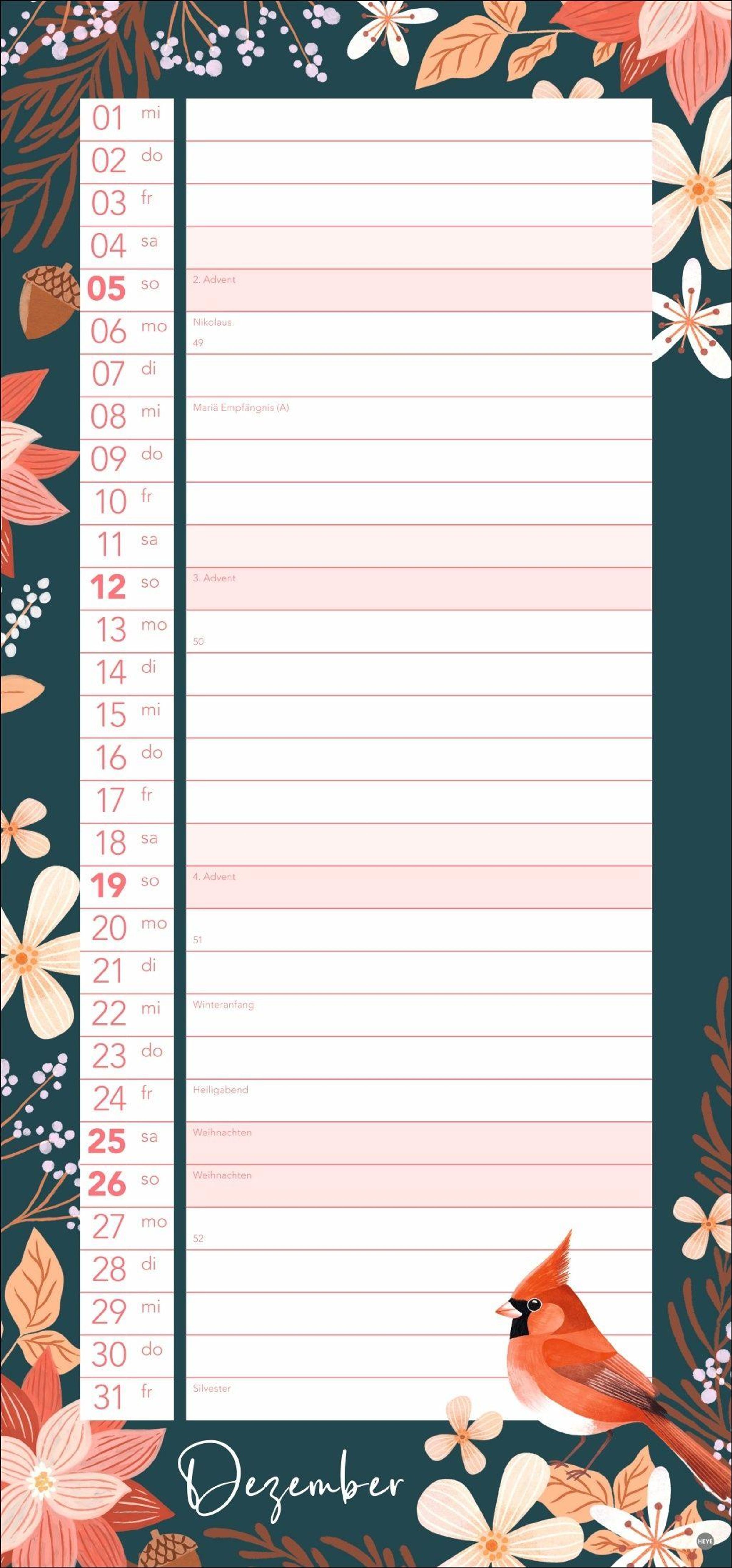 Ein dekoratives Planungsinstrument für Ihren Single-Haushalt: Der längliche Kalender im Format 21 x 45 cm