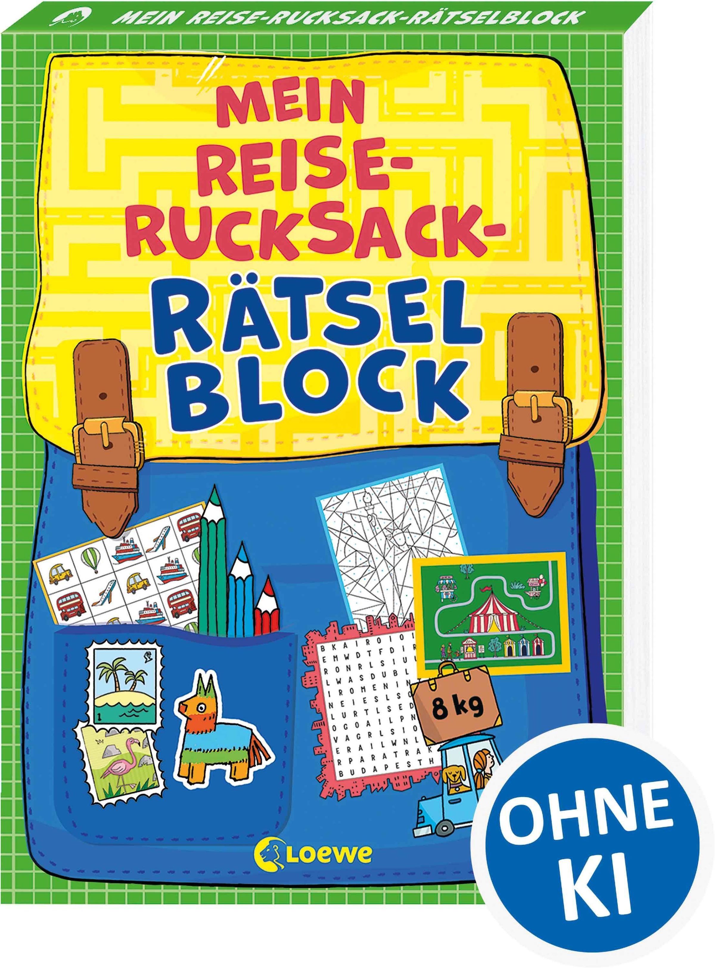 "MEIN REISE-RUCKSACK-RÄTSELBLOCK" und "OHNE KI". Ein bunter Rucksack mit Rätselheften und Stiften., Buch