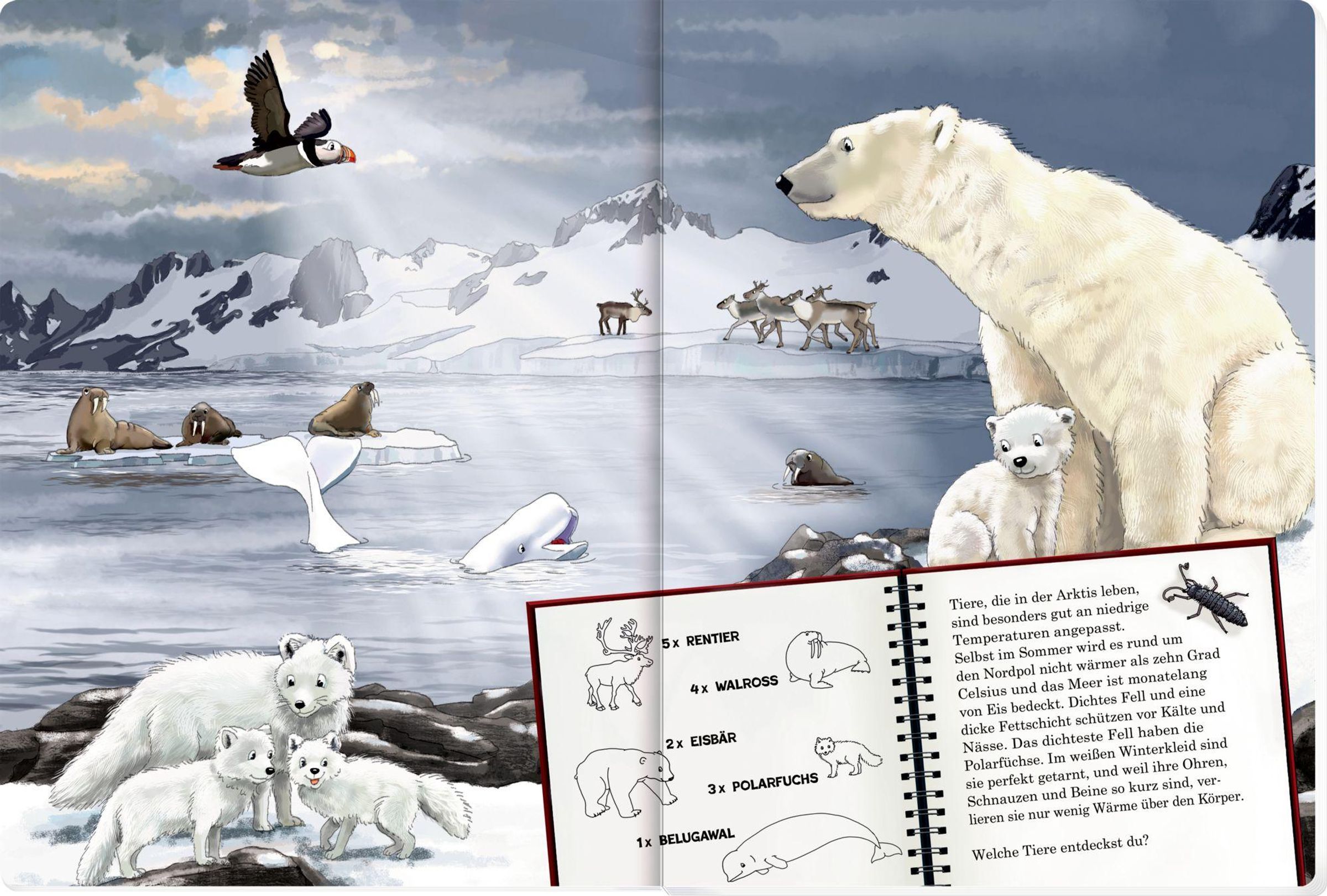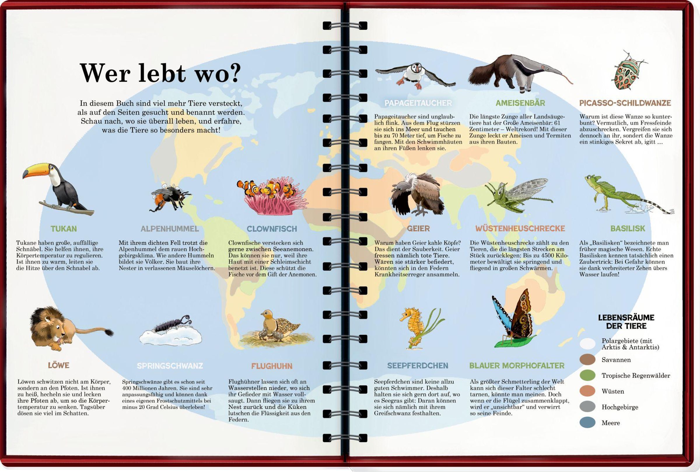 Dieses großformatige Wimmelbuch für Kinder ab 2 Jahren nimmt kleine Entdeckerinnen und Entdecker mit auf eine tierische Weltreise. Ob Savanne, Arktis, Tropen, Hochgebirge, Wüste oder Ozean - in jedem Lebensraum gibt es zahlreiche Tiere der Welt zu entdecken. Das Tier-Wimmelbuch verbindet spielerisches Suchen und Finden mit spannendem Sachwissen. Detailreiche Illustrationen, kindgerechte Infotexte und eine übersichtliche Weltkarte machen dieses Pappbilderbuch zu einem besonderen Erlebnis für neugierige Kinder.