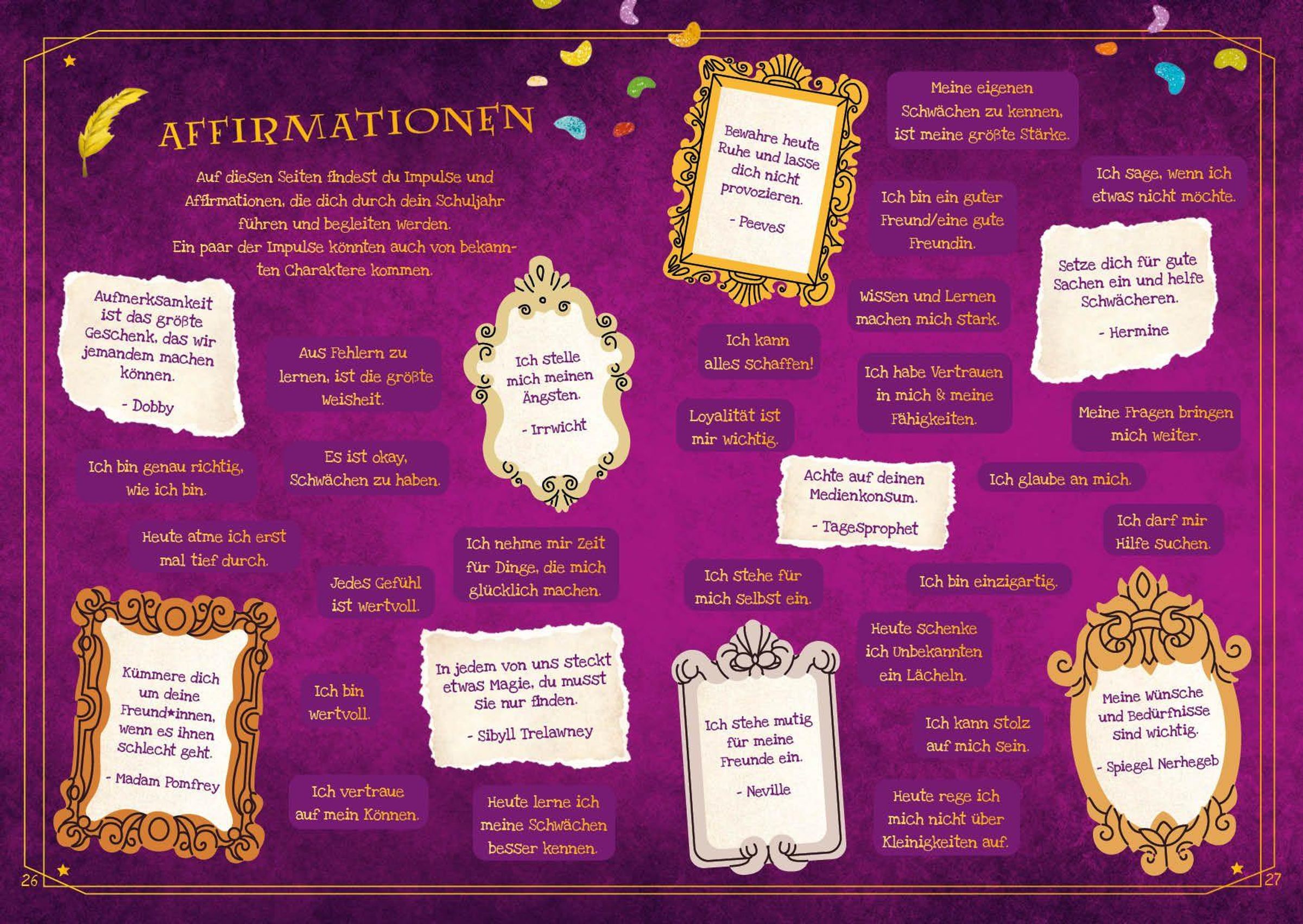 Finde heraus, in welches Haus du gehörst und welche magische Affirmationen und Impulse dich im Schuljahr begleiten werden. Teste in coolen Quizseiten dein Wissen über die Zauberwelt ! Dank zauberhafter Illustrationen und der hochwertigen Ausstattung mit Leseband und Goldfolie ist der Schulplaner auch optisch ein echter Hingucker!