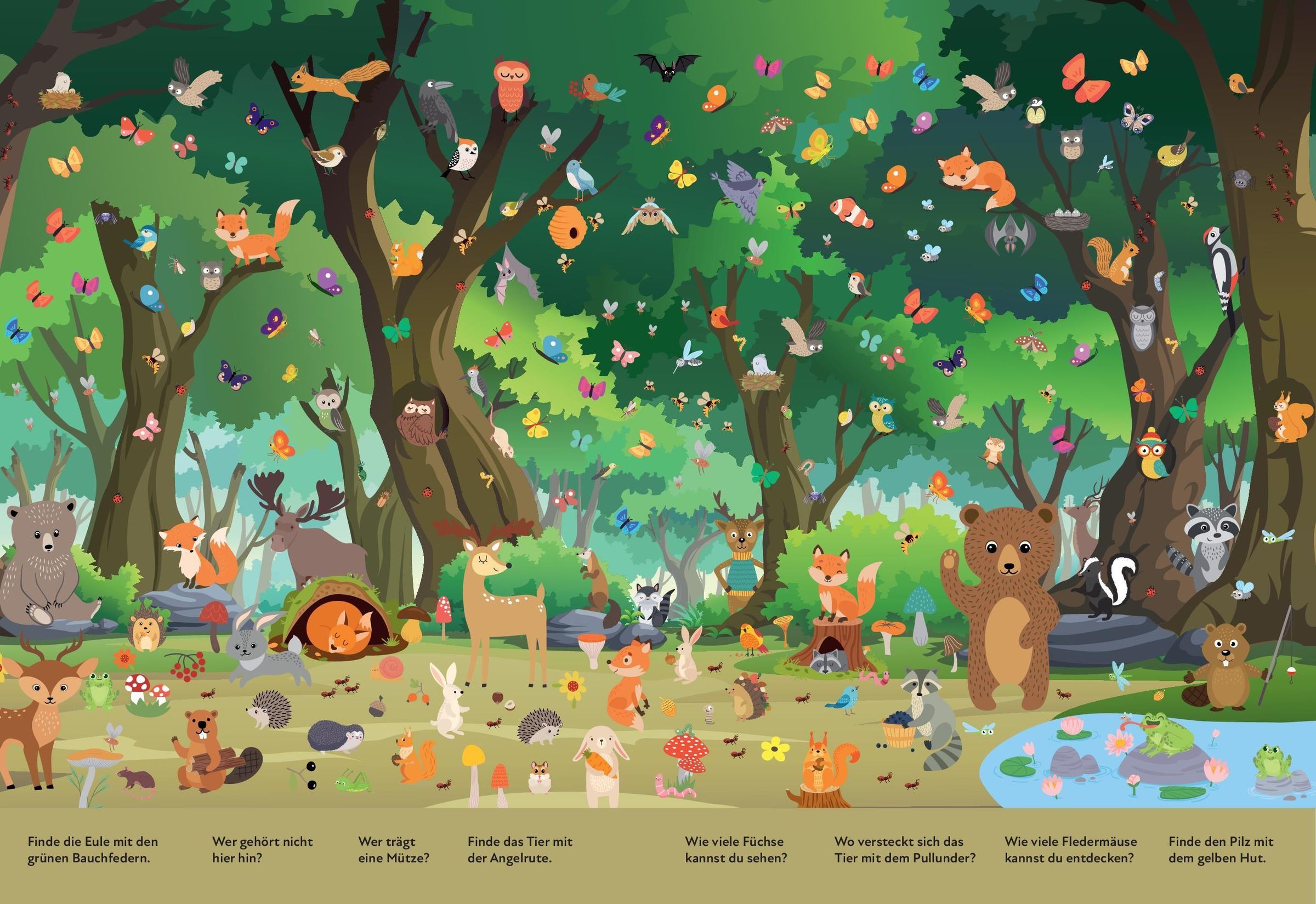 „Tiere" führt durch Bauernhof, Wald, Park, Zuhause und mehr -- 5 Szenerien voller Entdeckungen. Kinder zählen Tiere, finden Gegenstände und erweitern ihren Wortschatz. Das Großformat und der softe Einband machen die Nutzung angenehm. Mit Aufgaben und Lösungen wird Sprache und Naturverbundenheit spielerisch gestärkt.