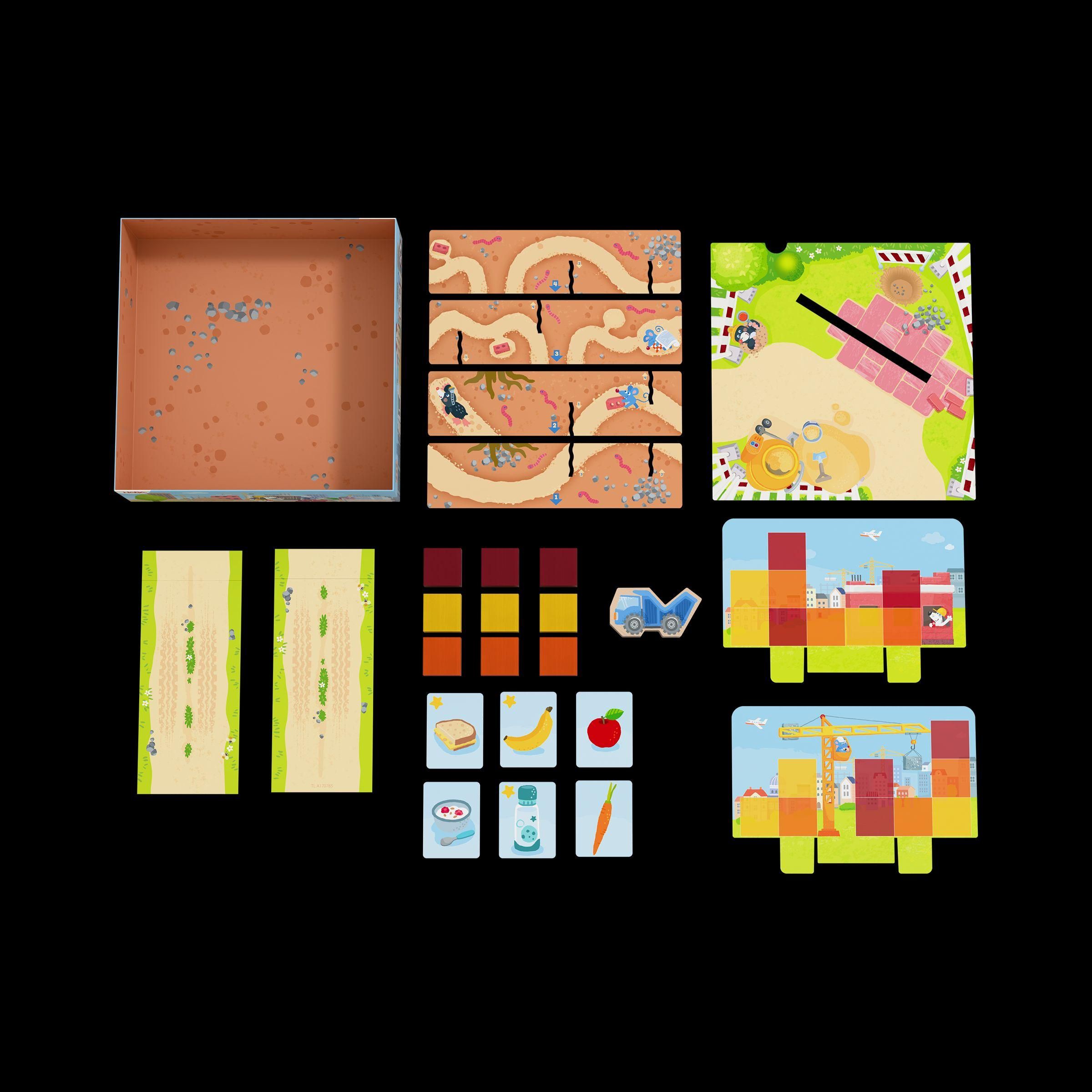 In Habahausen ist mächtig was los! An allen Ecken wird gebaut. Stockwerk für Stockwerk, Stein für Stein entstehen neue Häuser. Ärmel hoch und angepackt! Die Kinder bringen mit dem Muldenkipper die notwendigen Bausteine heran und führen den Kran zur richtigen Stelle. Schaffen sie es, alle Steine nach Bauplan zu stapeln, bevor der Arbeitstag endet?