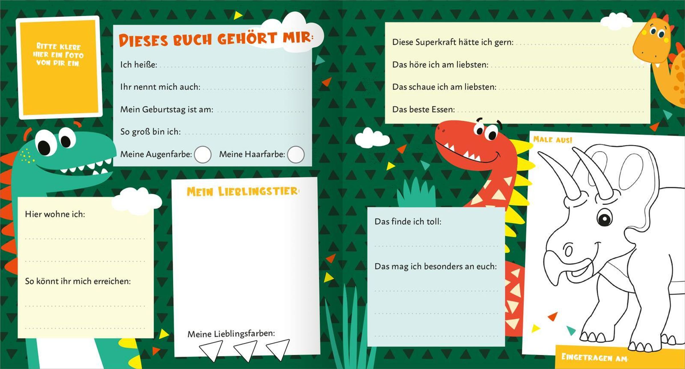 - Für Dinofans: Bunt gestaltete Seiten mit vielen coolen Dinosauriern