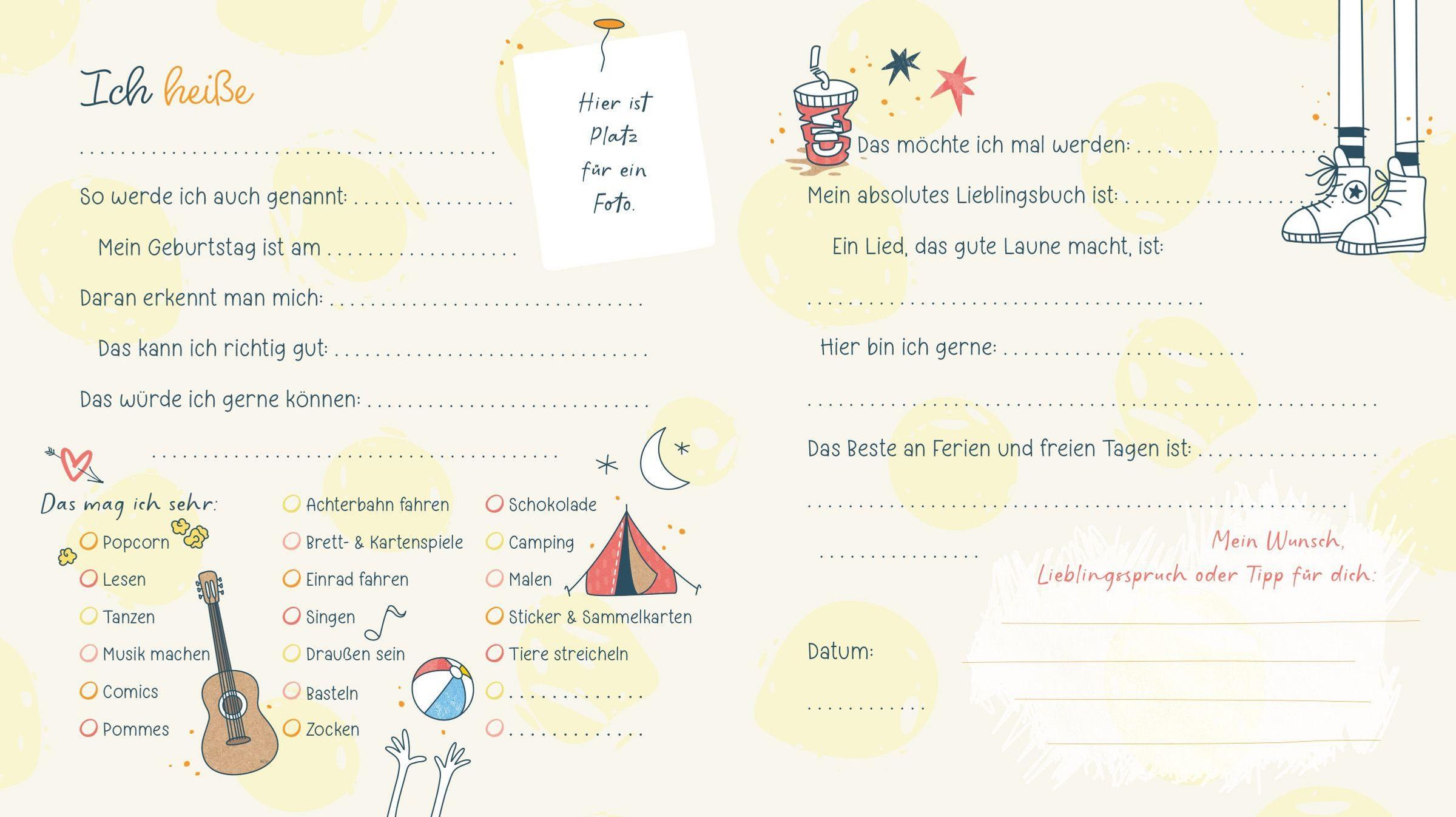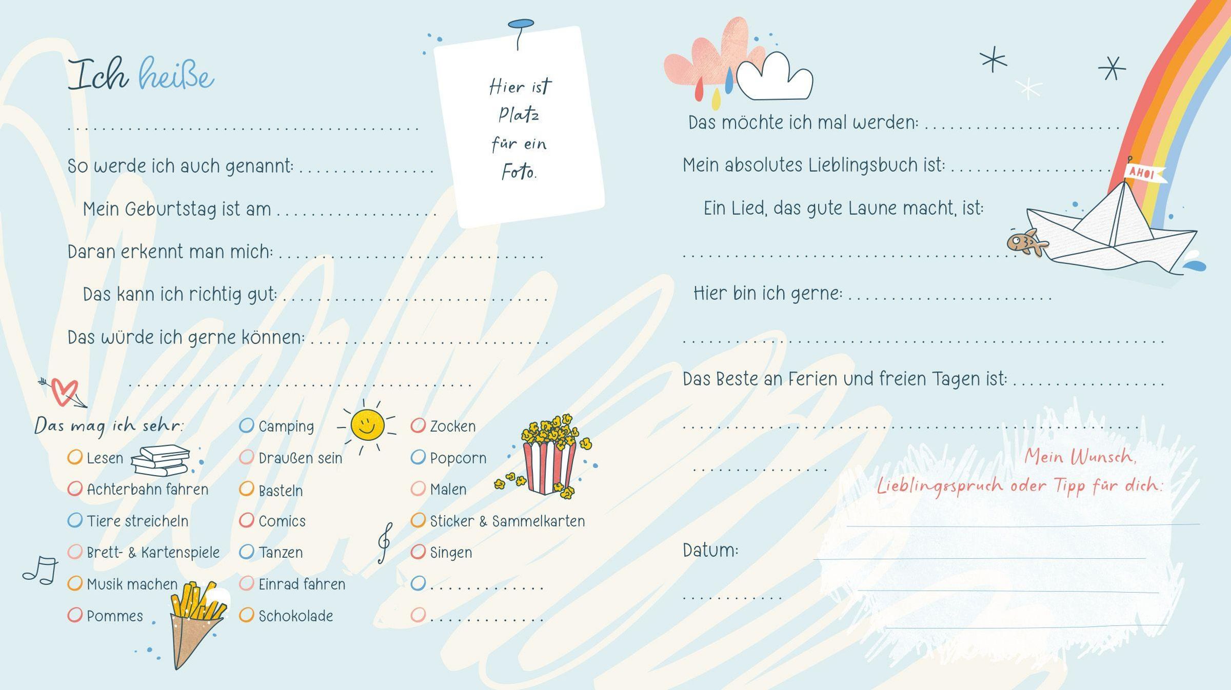 Dieses dekorative Freundschaftsbuch bietet eine tolle Möglichkeit, schöne Erinnerungen zu sammeln. Auf unterschiedlich gestalteten Doppelseiten können sich alle Freundinnen und Freunde, Klassenkameraden und Klassenkameradinnen, Bekannte und Verwandte verewigen: mit Wünschen und Plänen, liebsten Büchern, Liedern und vielem mehr. Es gibt Platz für Fotos und persönliche Grüße, inkl. Geburtstagsübersicht.