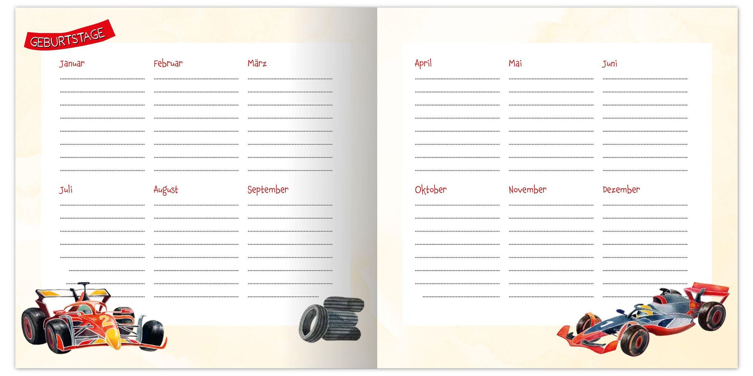 Dieses Freundebuch ist besonders schön für Kinder, die Technik und Geschwindigkeit lieben. Auf jeder Seite gibt es neue Fahrzeuge zu entdecken: Vom Feuerwehrauto, über den Formel 1-Wagen oder den Bagger, bis hin zum Sportwagen oder Polizeiauto. So wird das Eintragen nie langweilig.