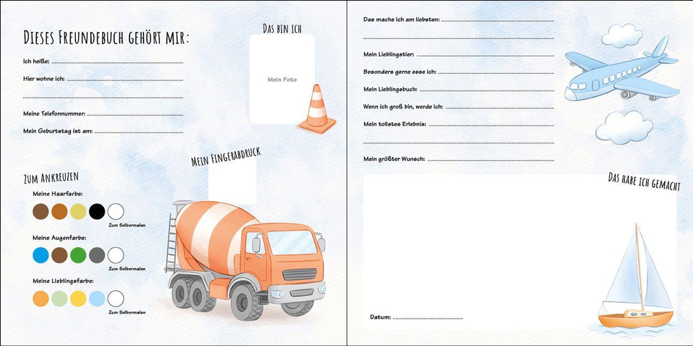 Zur Erinnerung an allererste Freundschaften Hier können Freundinnen und Freunde aus der Kindergartenzeit ihr Lieblingstier und ihren größten Wunsch eintragen und sich mit einem selbstgemalten Bild verewigen. So entsteht ein einzigartiges Andenken an eine ganz besondere Zeit.
