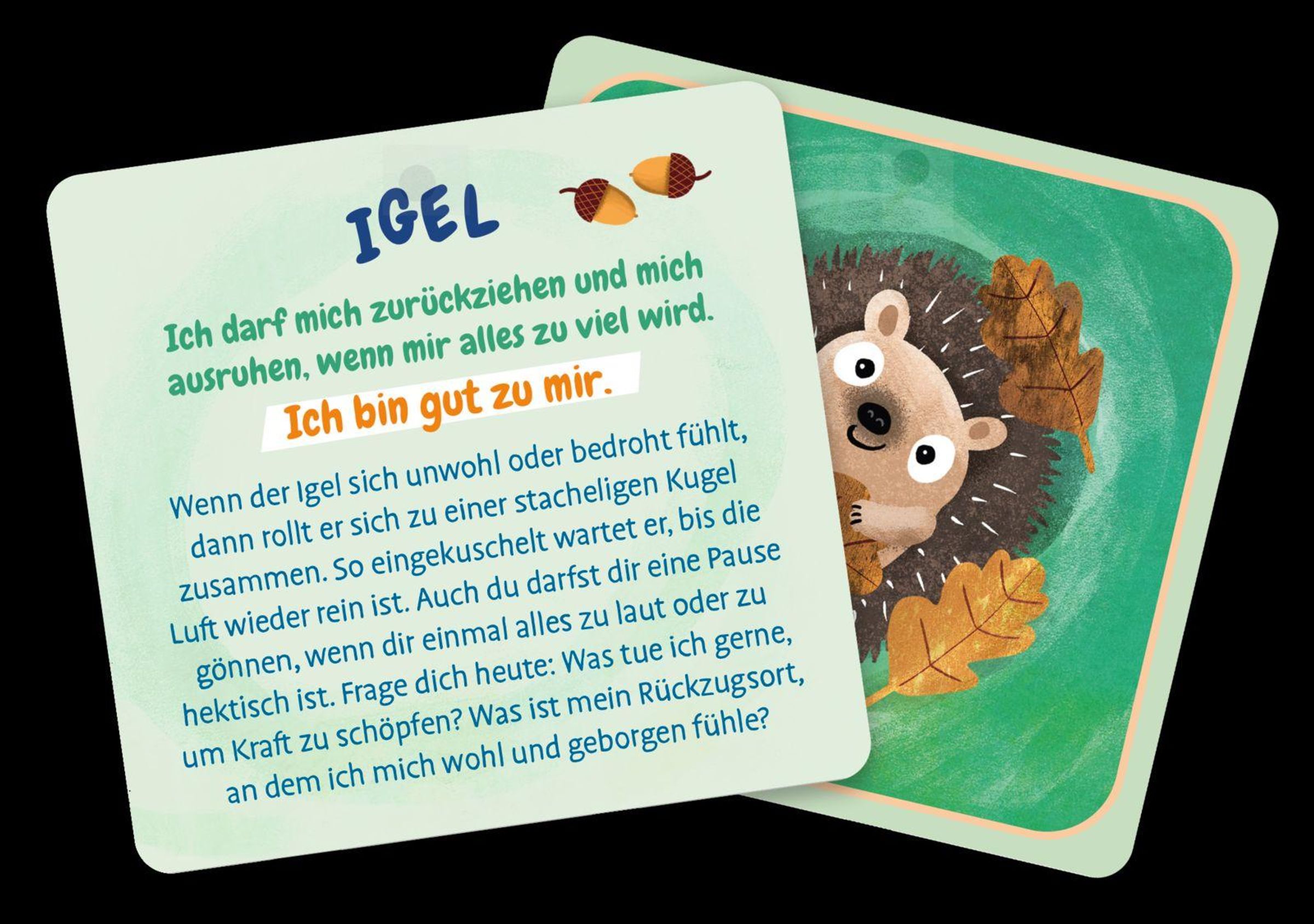 - Kartenbox mit 25 altersgerecht aufbereiteten, positiven Affirmationen und Gedanken sowie passenden kleinen Reflexionsfragen
