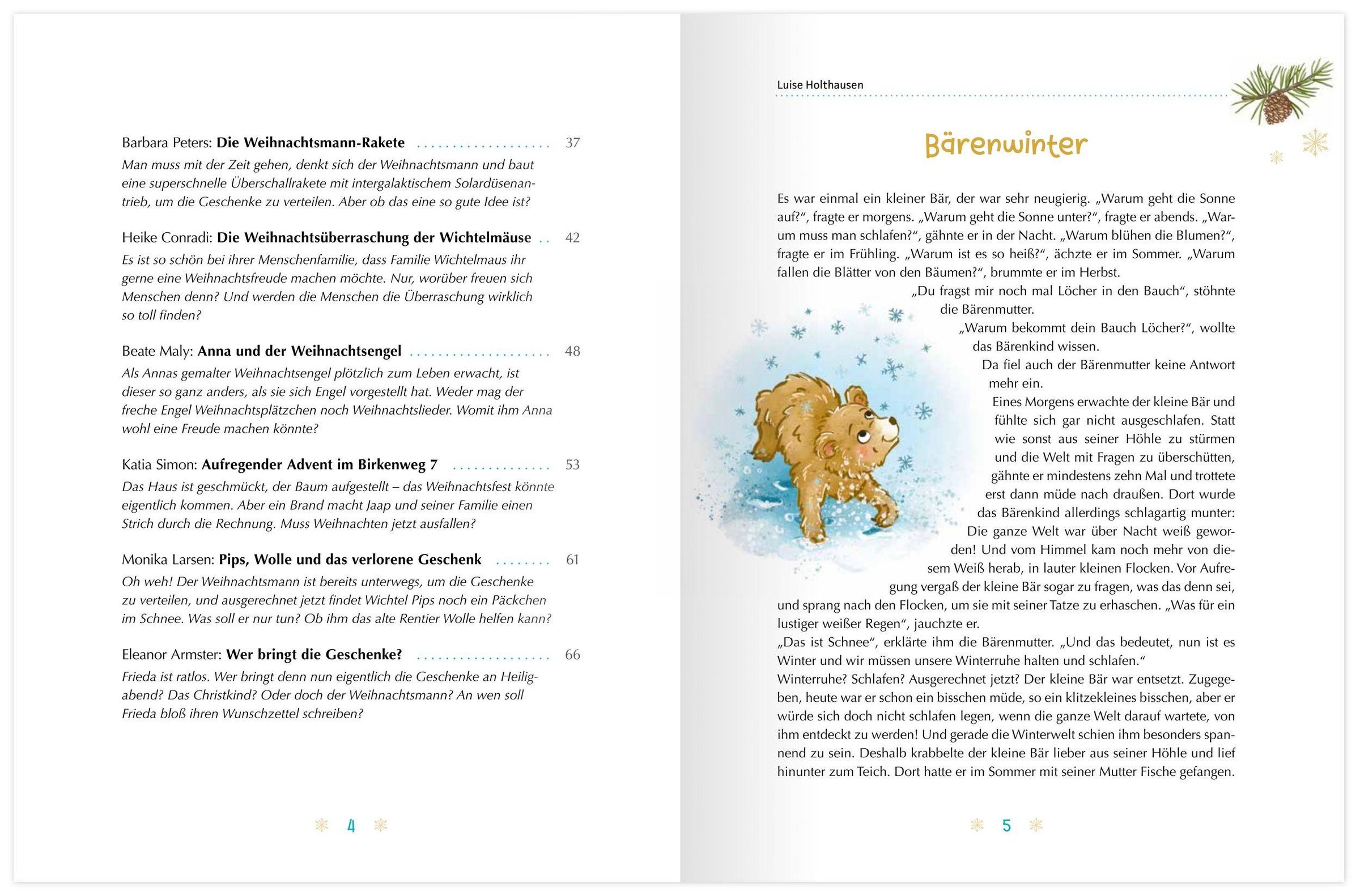 Jede Geschichte in diesem Kinderbuch nimmt junge Leserinnen und Leser mit in ein neues winterlich-weihnachtliches Setting und lässt so nach und nach immer mehr Weihnachtsstimmung aufkommen.