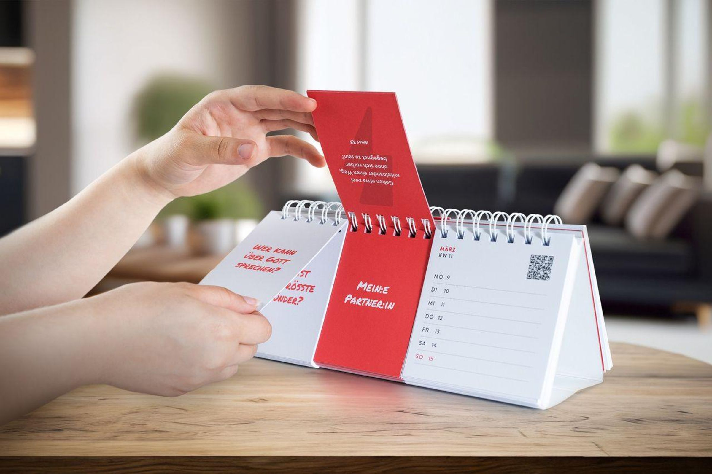 - Tischkalender zum Aufstellen mit Wochenkalendarium und Spiralbindung