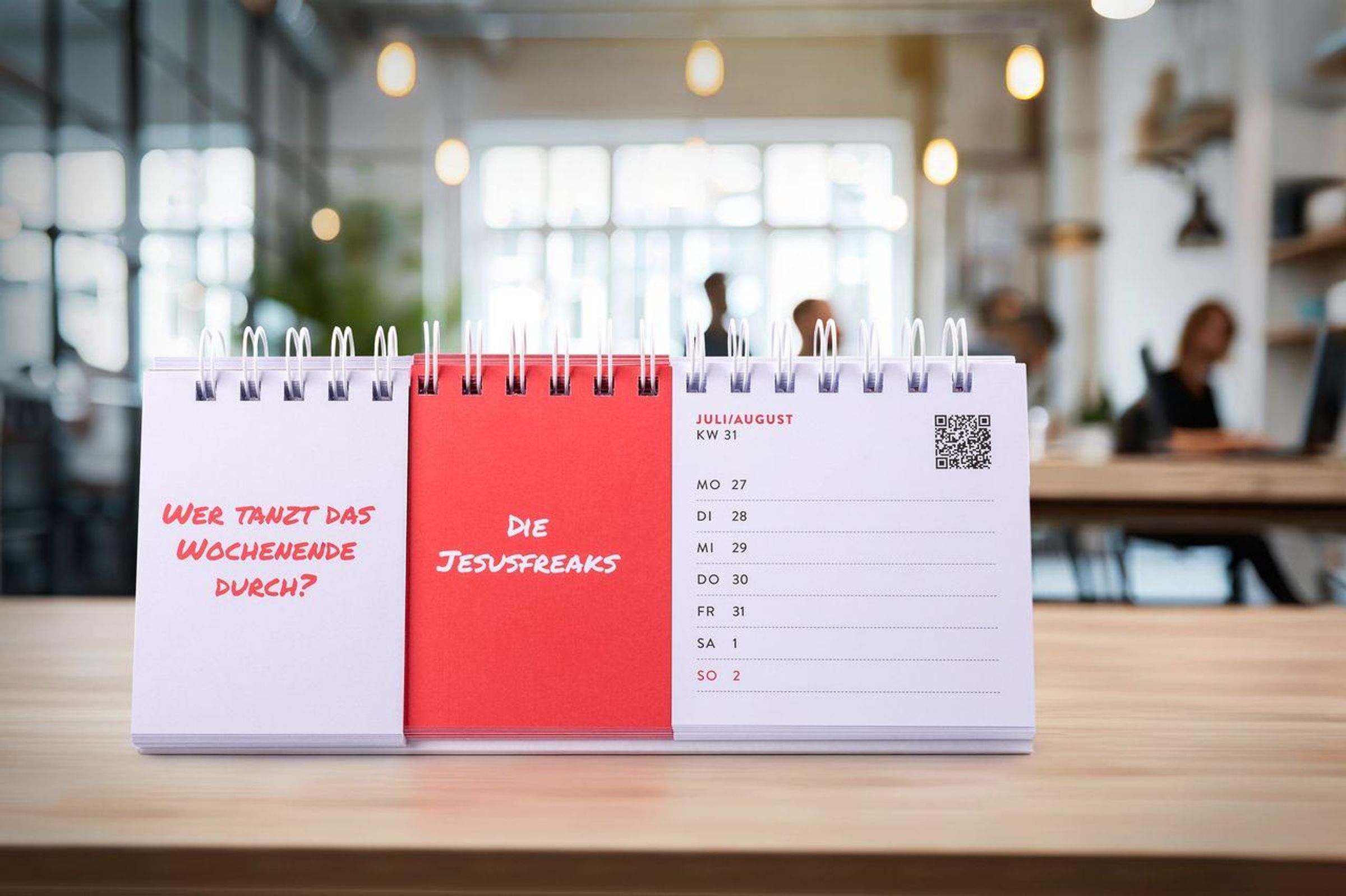 Die wöchentlichen Inhalte machen ihn zu einem originellen und aktuellen Begleiter im Glauben und durch das Jahr: von Wochenkalendarium, Mini-Andachten, Bibelversen und Fragen zum Weiterdenken bis zum überraschenden QR-Code der Woche. Die Mini-Andachten folgen jedes Jahr einem neuen Jahresthema. 2026 geht es um inspirierende Persönlichkeiten. Hinter den QR-Codes verbergen sich z. B. vertiefende Informationen, ein YouTube-Video, Lied, Buchtipp, Filmvorschlag u. v.m.