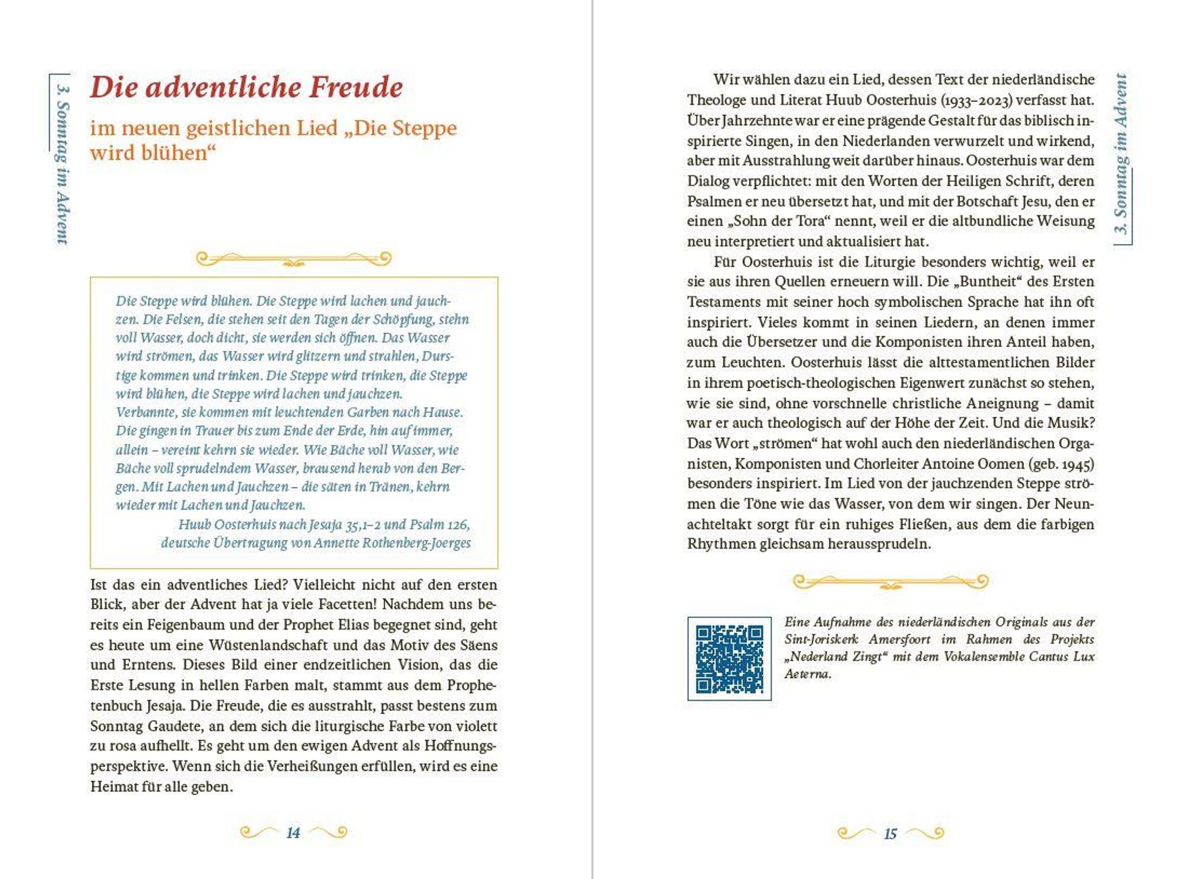 Der Freiburger Theologe und Musikwissenschaftler Meinrad Walter präsentiert erstmals ein "Klingendes Kirchenjahr", indem er diesen komponierten Spuren Sonntag für Sonntag und Festtag für Festtag nachgeht. Er kommentiert ausgewählte Stücke der Vokal- und Instrumentalmusik in gut verständlicher Sprache, damit die musikalischen Meisterwerke ihre spirituellen Inspirationen neu entfalten können. QR-Codes führen zu hervorragenden Einspielungen im Internet, so dass Lesen, Betrachten und Hören sich zu einem biblisch-musikalischen Dreiklang ergänzen.