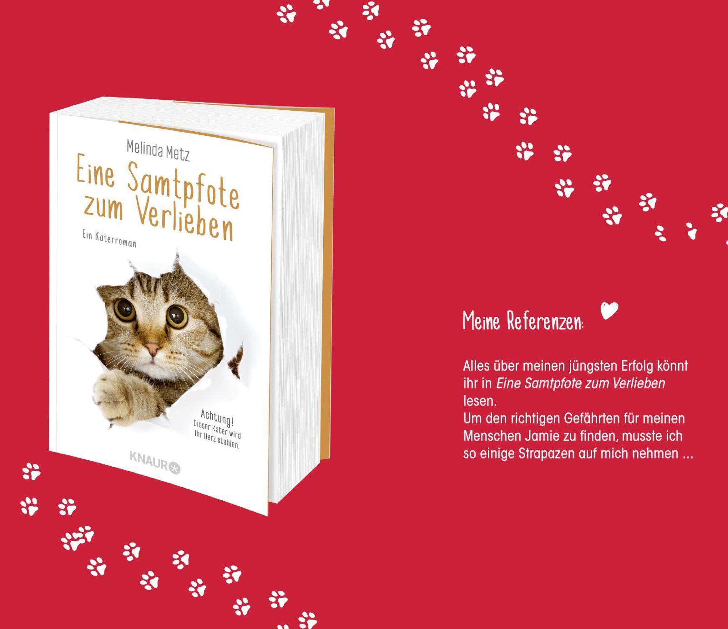 Das Liebes-Abenteuer von MacGyvers Frauchen Jamie mit dem Hunde-Besitzer David hat Melinda Metz in ihrem ersten Katzen-Roman 'Eine Samtpfote zum Verlieben' aufgeschrieben.