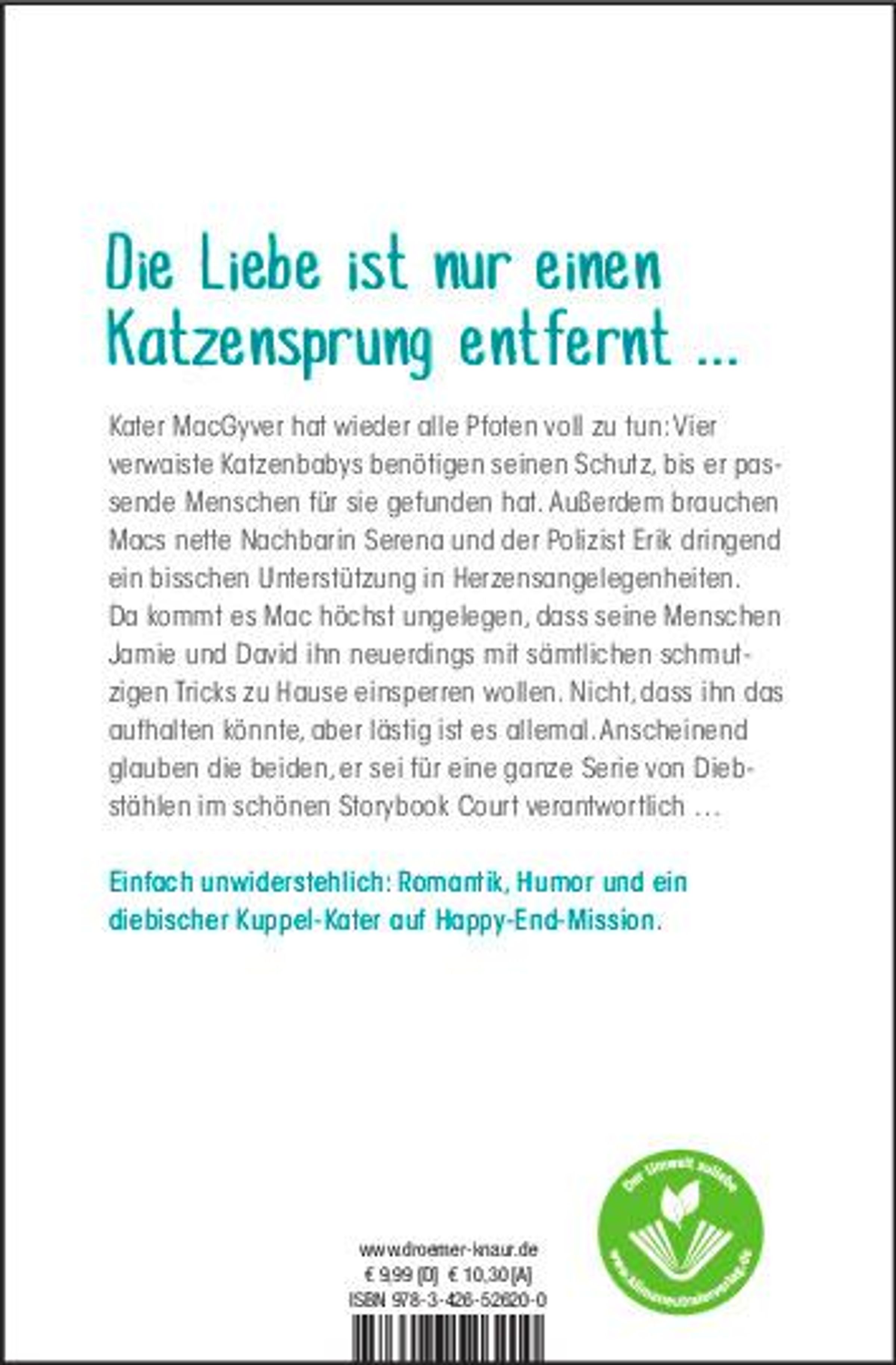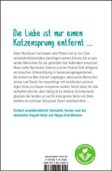 Leider sind seine Menschen Jamie und David vom Gegenteil überzeugt und versuchen mit sämtlichen schmutzigen Tricks, MacGyver zu Hause einzusperren. Nicht, dass ihn das aufhalten könnte - schließlich muss Mac sich um vier verwaiste Katzen-Babys kümmern, bis er die passenden Menschen für sie gefunden hat. MacGyvers neue Nachbarin, die junge Schauspielerin Serena, wäre vielleicht geeignet - vorausgesetzt, dem Kuppel-Kater gelingt es, Serena in Sachen Liebe ein bisschen auf die Sprünge zu helfen. Merkt sie denn gar nicht, wie der nette Polizist Erik um sie herumschwänzelt?