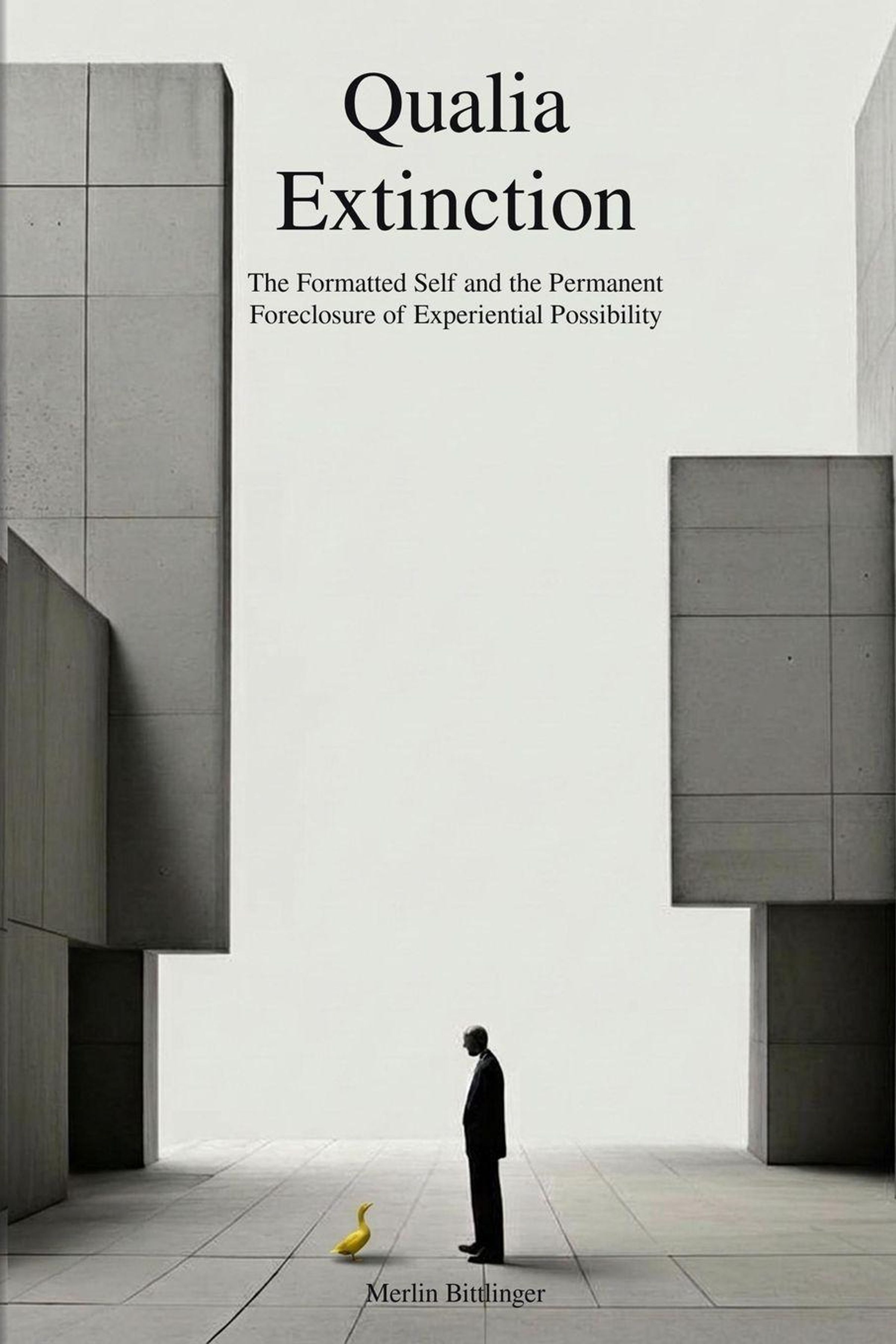 Text: "Qualia Extinction. The Formatted Self and the Permanent Foreclosure of Experiential Possibility. Merlin Bittlinger."