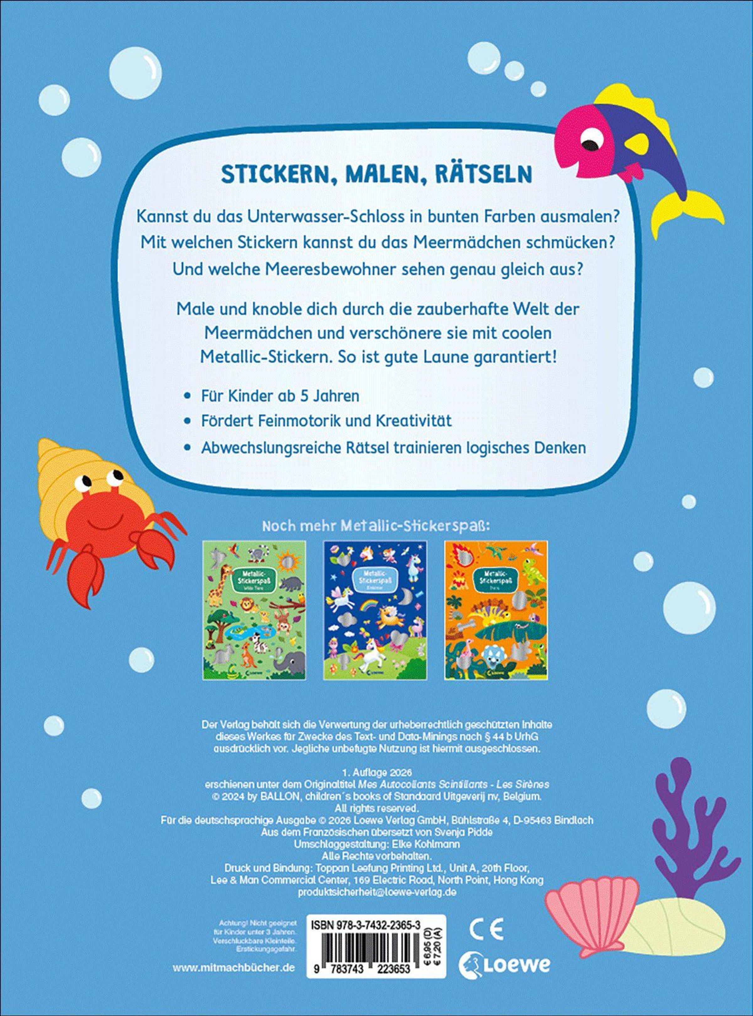 Male und knoble dich durch die zauberhafte Welt der Meermädchen und verschönere sie mit coolen Metallic-Stickern. So ist gute Laune garantiert!
