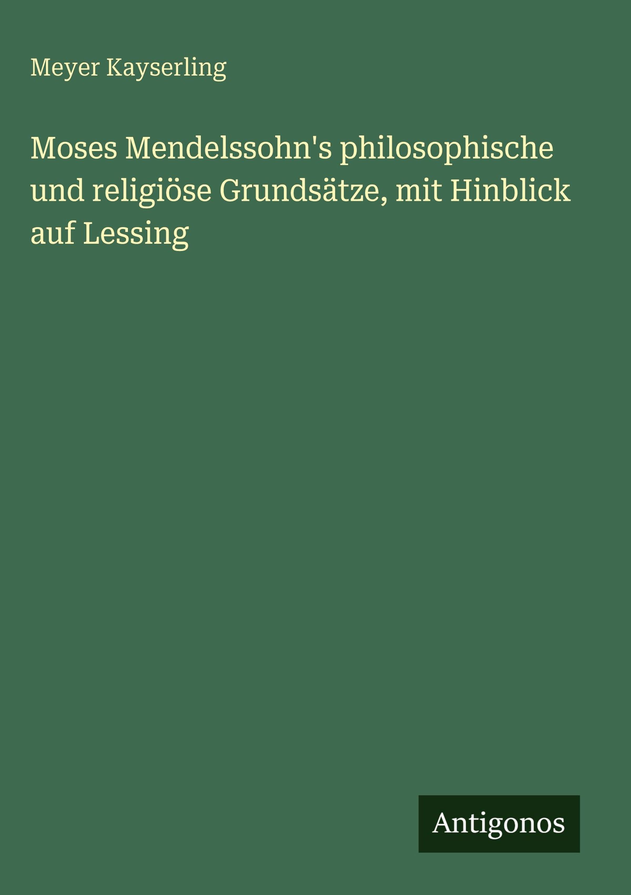 Meyer Kayserling: Moses Mendelssohn's philosophische und religiöse Grundsätze, mit Hinblick auf Lessing, Gebunden