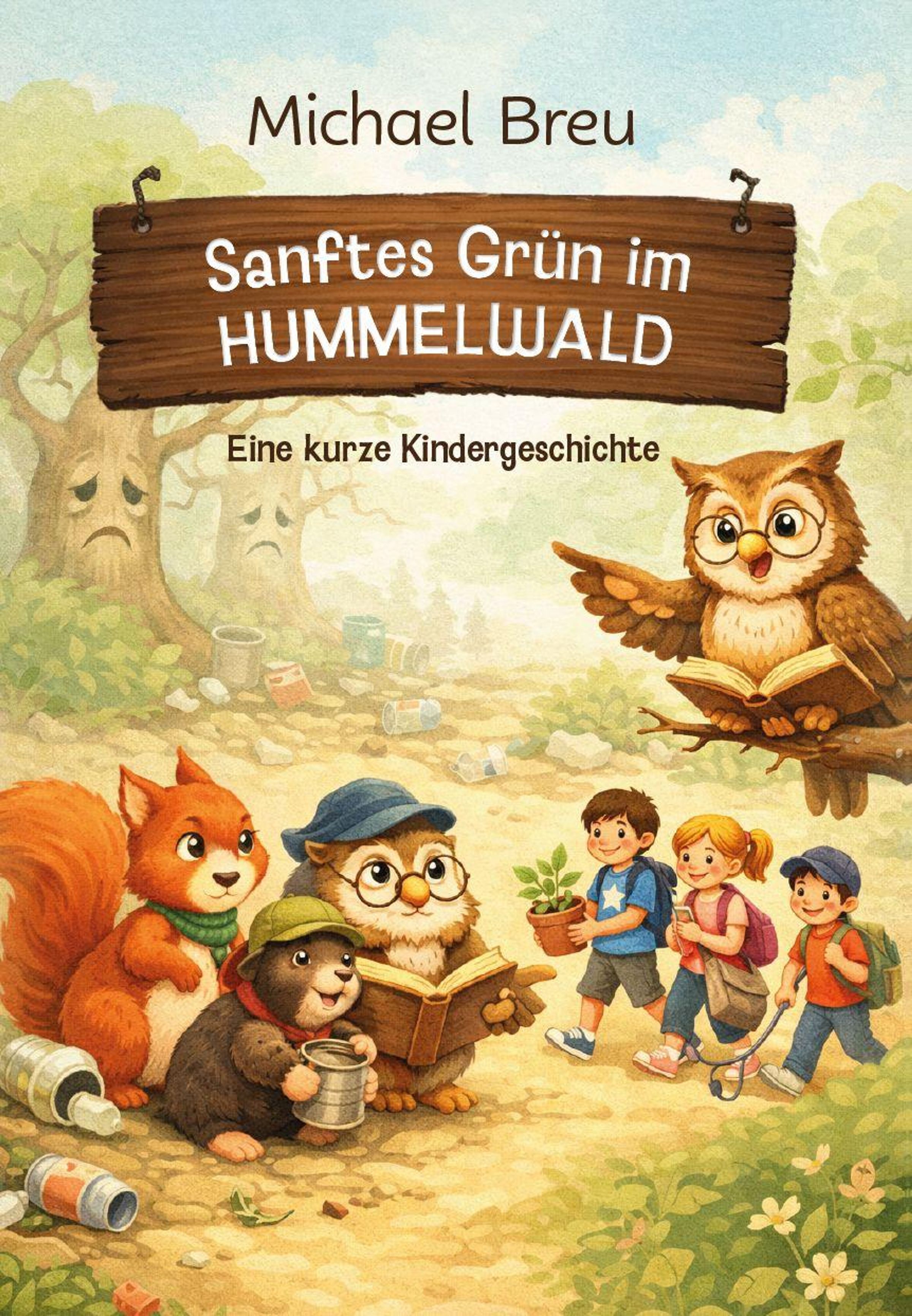 „Sanftes Grün im Hummelwald“ von Michael Breu ist eine kurze Kindergeschichte. Illustration: Tiere und Kinder im Wald., Buch