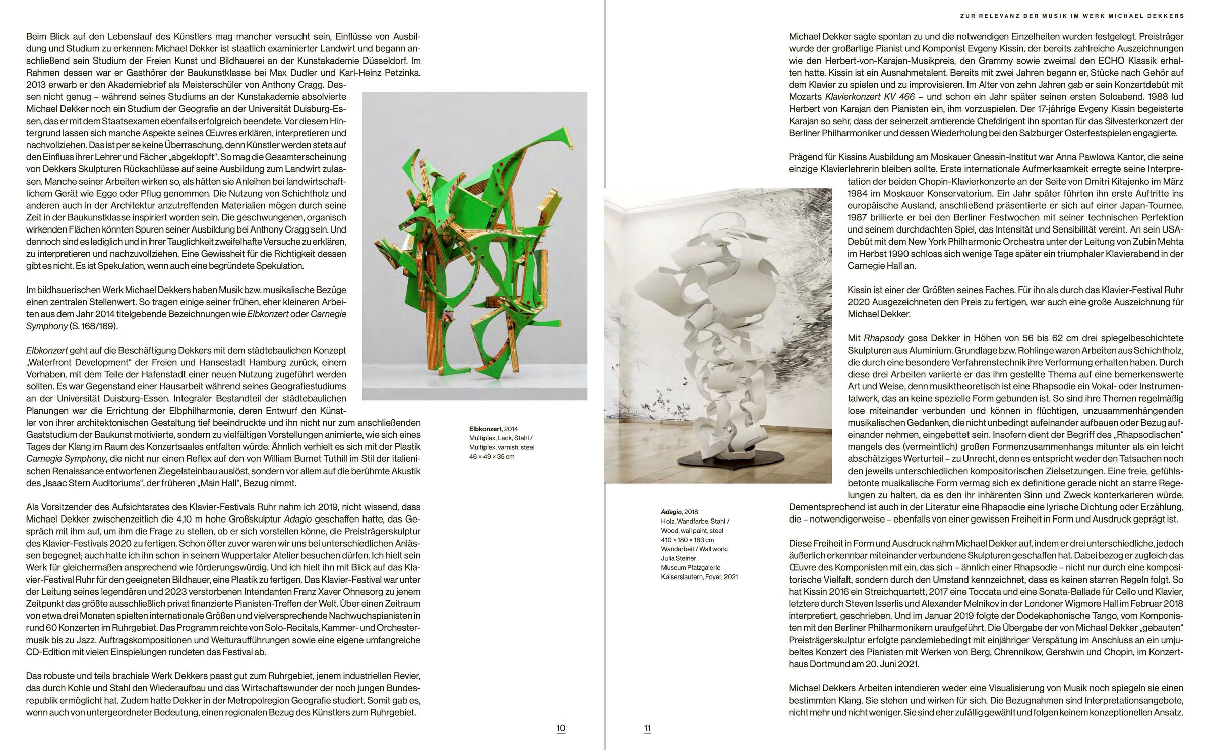 Liquidist die erste Monografie von Michael Dekker und bietet einen umfassenden Überblick über sein Schaffen der letzten 15 Jahre. Essays von Prof. Dr. Thomas A. Lange, Kay Heymer und Jörg Mascherrek ordnen sein Werk in die Tradition der modernen Bildhauerei ein und heben die Relevanz von Rhythmus und Musik hervor.