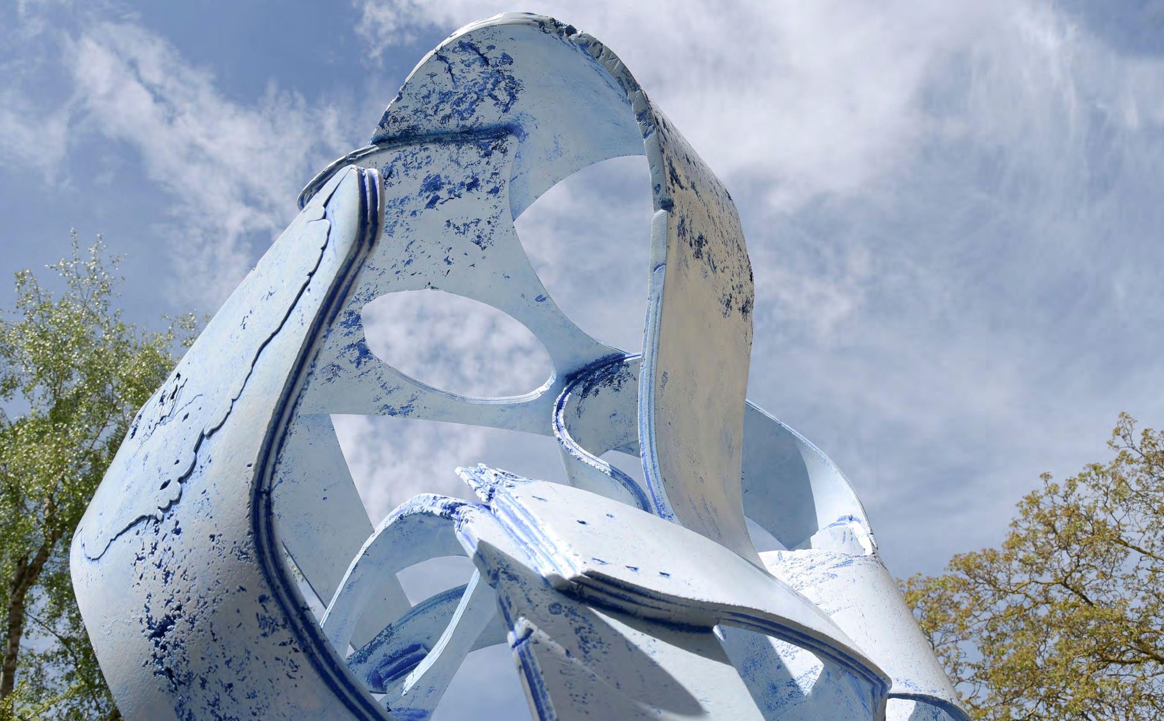 Der Bildhauer Michael Dekker (geb. 1983 in Ludwigshafen; lebt und arbeitet in Wuppertal und Düsseldorf) verbindet in seiner Praxis natürliche Formprozesse mit architektonischem Denken, bei denen der Raum, das Volumen und die Bewegung in Ort und Zeit wichtige Kategorien darstellen. Aus gefundenen, geschnittenen und gebogenen Materialien entwickelt er großformatige Skulpturen, die gleichermaßen Konstruktion und Bewegung verkörpern. Dekkers Formen und Gebilde schrauben sich in organischen Bögen und Schwüngen in die Höhe und scheinen von Richtungsänderungen angetrieben zu werden.