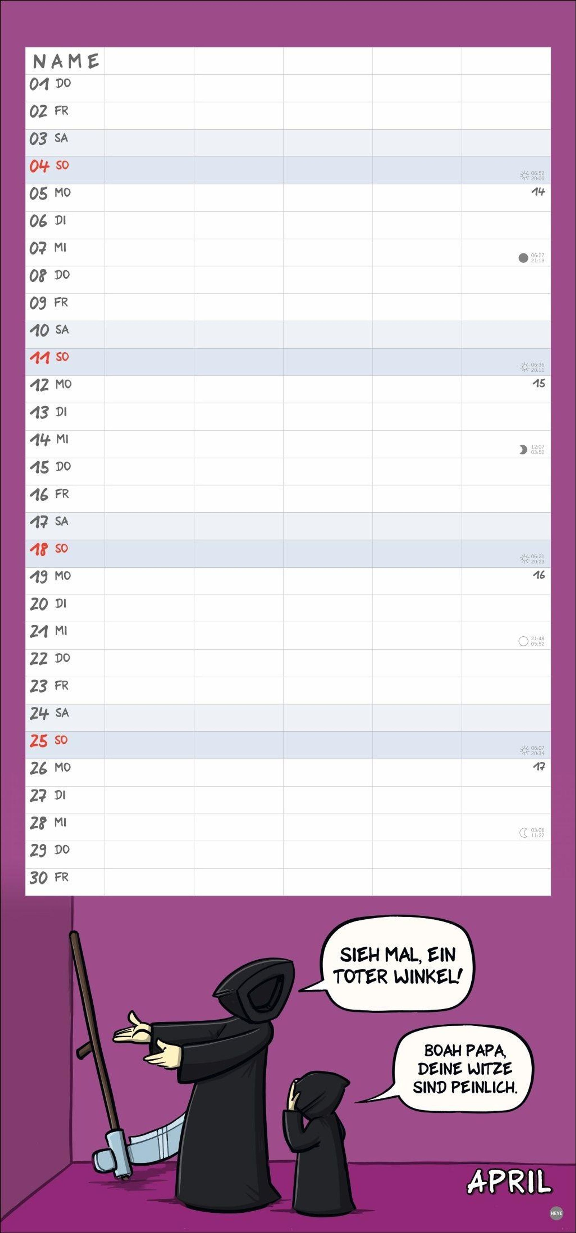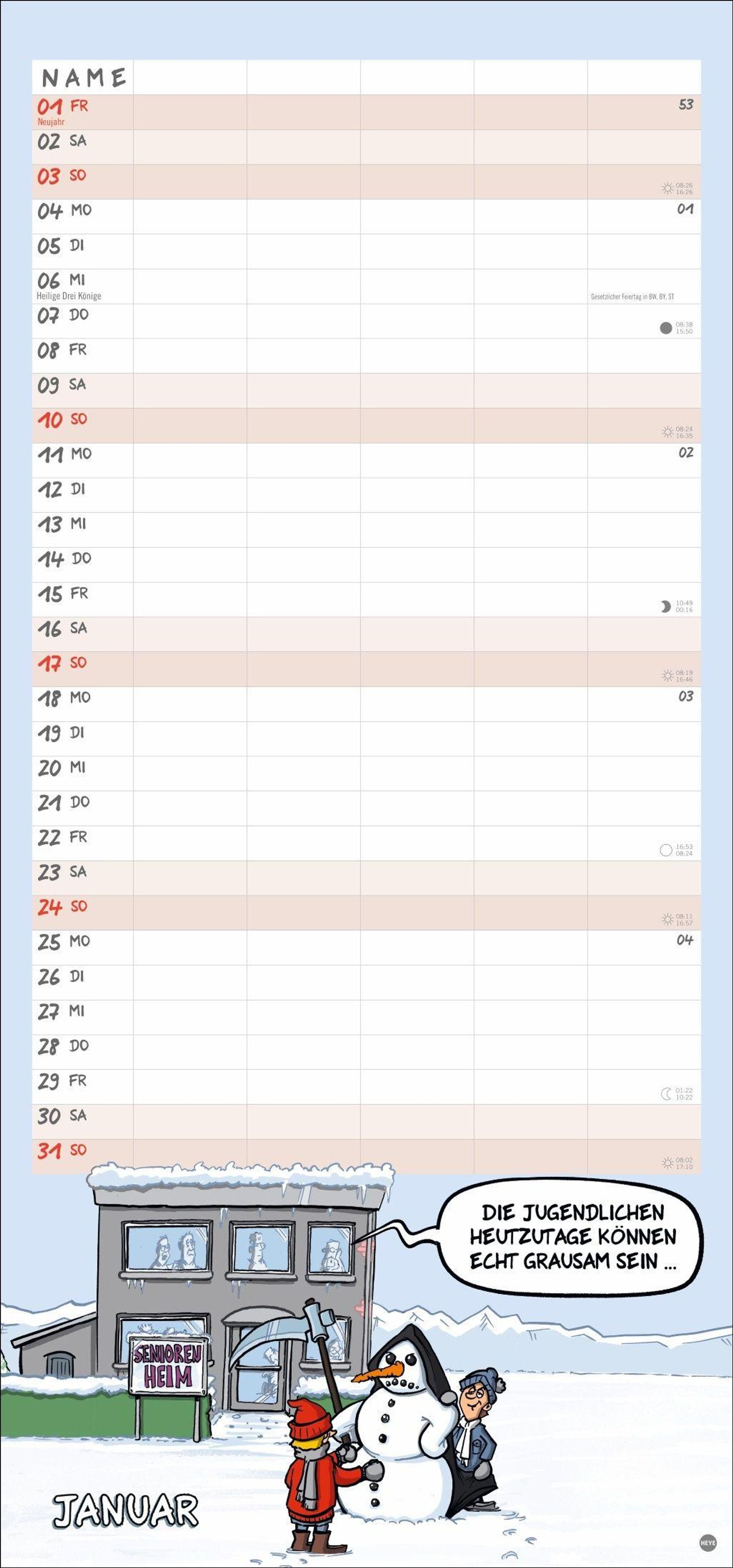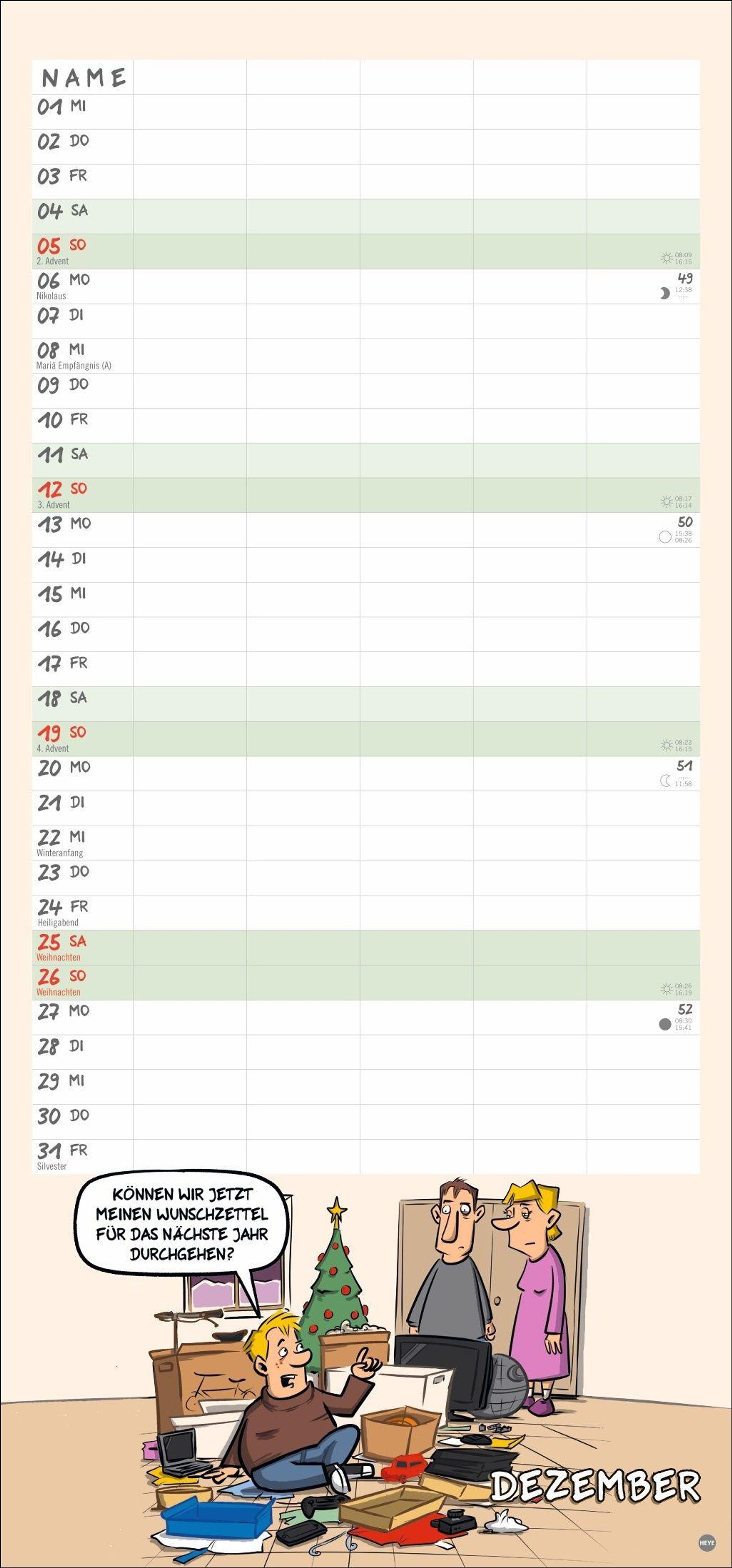- Mehr Ordnung im Familienchaos: Lustiger Kalender mit 5 Spalten und heiteren Cartoons über den täglichen Wahnsinn. Wandkalender 21 x 45 cm