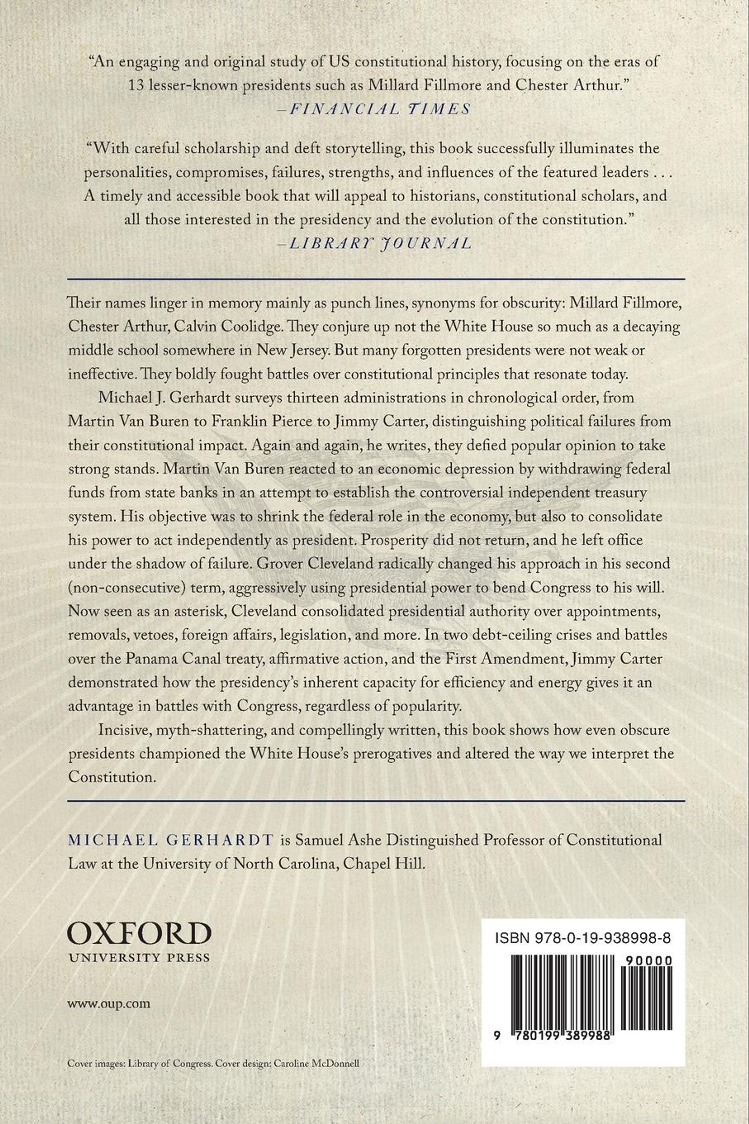 In this book eminent constitutional scholar Michael Gerhardt tells the stories of thirteen presidents whom most Americans do not remember and scholars think had no constitutional impact, among them Chester Arthur, Martin Van Buren, and William Howard Taft. As Gerhardt shows, our forgotten presidents played crucial roles in laying some of the groundwork followed by Lincoln and other modern presidents, as well as providing examples for future lawmakers ofconstitutional choices to avoid.
