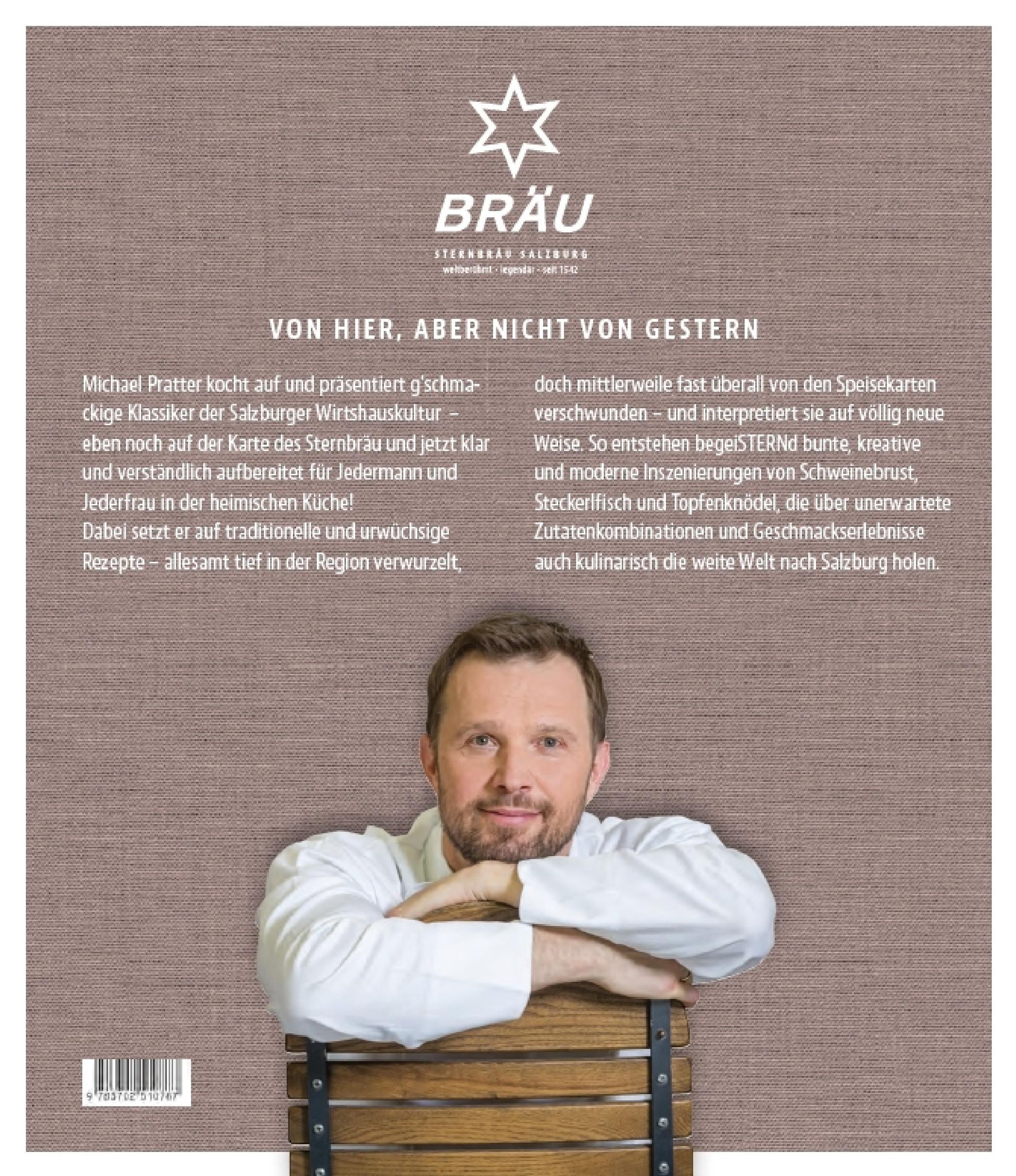 Michael Pratter kocht auf und präsentiert g'schmackige Klassiker der Salzburger Wirtshauskultur - eben noch auf der Karte des Sternbräu und jetzt auch aufbereitet für die Küche daheim. Er setzt dabei auf traditionelle und urwüchsige Rezepte - allesamt tief in der Region verwurzelt, doch mittlerweile fast überall von den Speisekarten verschwunden - und bürstet sie gegen den Strich. So entstehen bunte, kreative und moderne Inszenierungen von Kalbsbrust, Steckerlfisch und Topfenknödeln, die über unerwartete Zutatenkombinationen und Geschmackserlebnisse auch kulinarisch die weite Welt nach Salzburg holen.