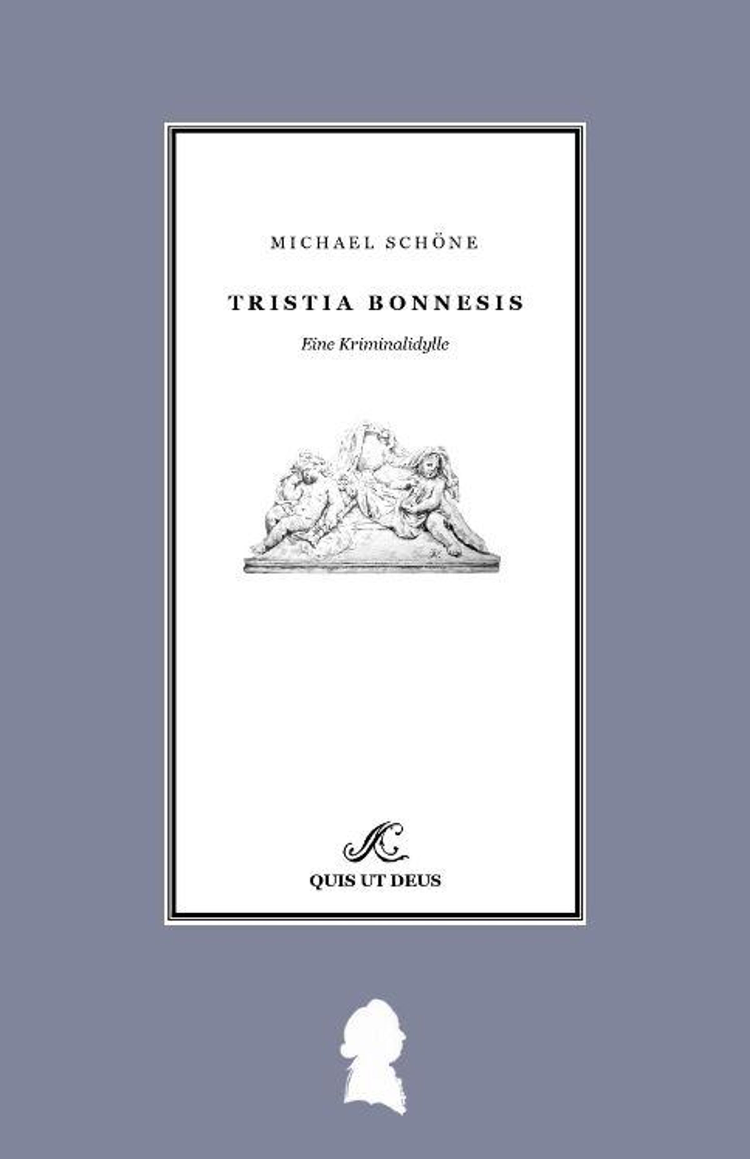 "Michael Schöne, Tristia Bonnesis: Eine Kriminalidylle. Quis ut Deus. Illustration mit Figuren in der Mitte.", Buch