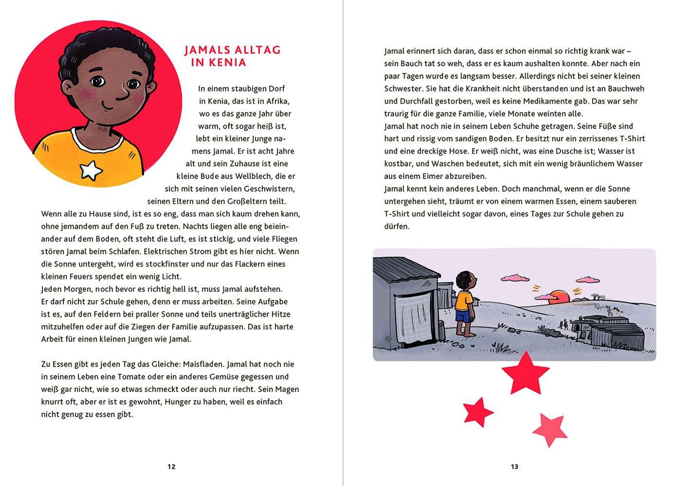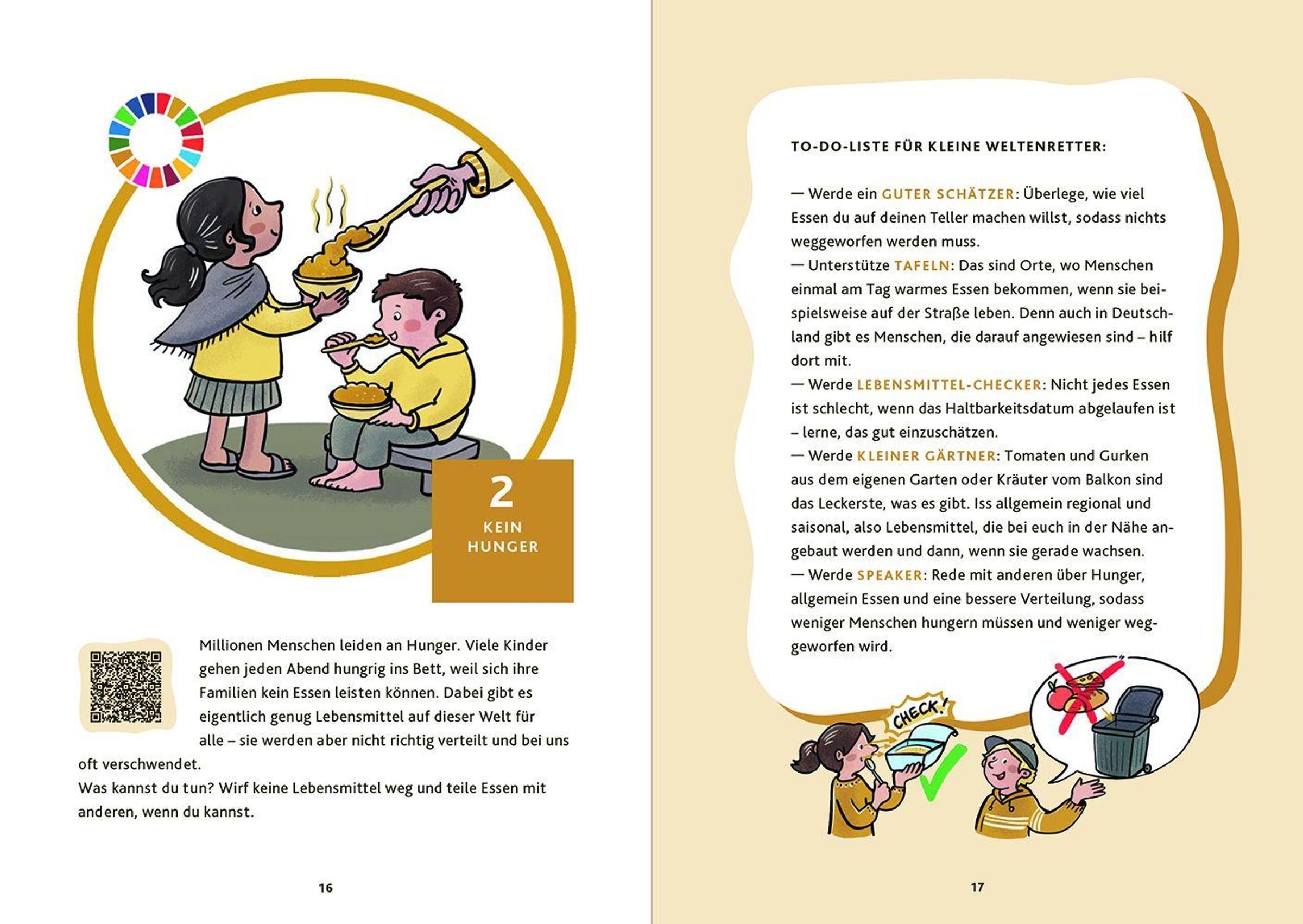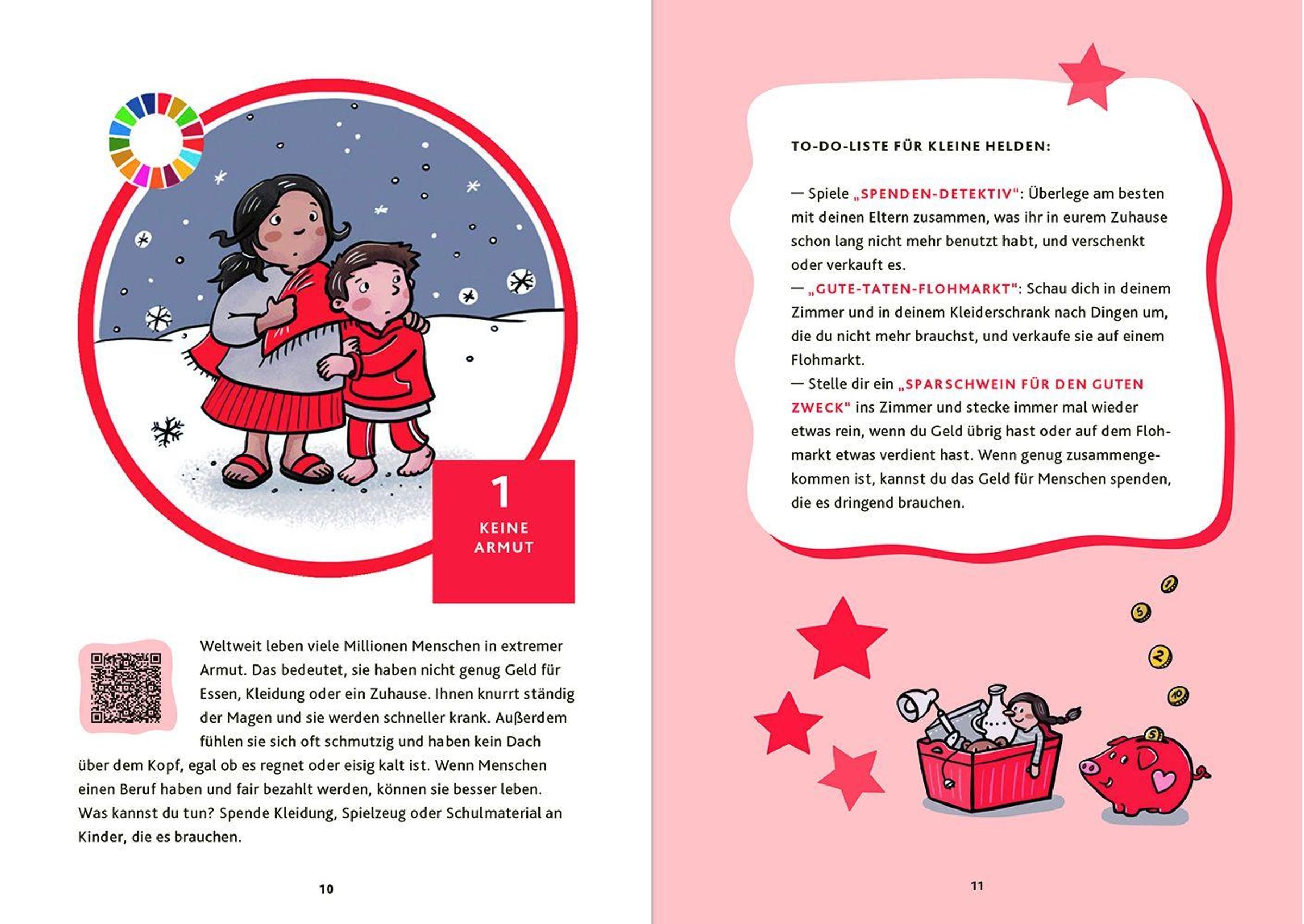 Spürst du es auch? Unsere Erde sendet uns leise und laute Zeichen, dass sie unsere Hilfe braucht. Manchmal ist es brütend heiß, dann regnet es viel zu viel, neue Krankheiten tauchen auf, und es gibt so viel Müll. Stell dir vor, du könntest unsere Welt wieder ein kleines bisschen besser machen. In Kleine Helden, große Ziele reist du einmal um die Erde: zu Elara nach Äthiopien, zu Kiran nach Indien, zu Mika in die Ukraine und zu Kiki, einem schlauen Orang-Utan, in den Regenwald. Begleite sie auf einer spannenden Reise voller Mut, Freundschaften und kluger Einfälle. Gemeinsam entdeckt ihr mehr als 17 Ideen, wie wir unsere Zukunft wieder wunderschön machen können.