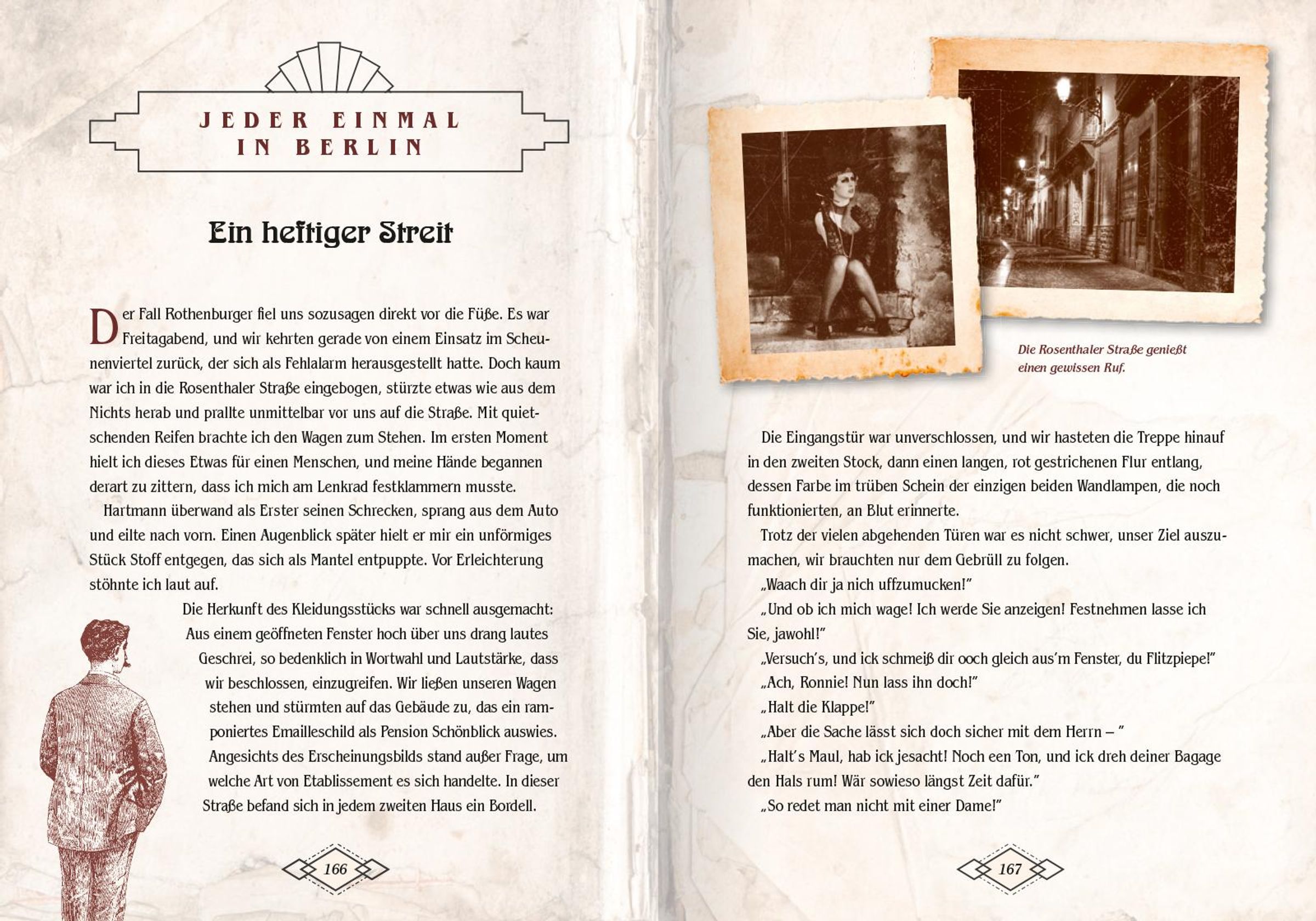 Werden Sie zum Ermittler! Berlin 1922 - eine Stadt zwischen Vergnügen und Verbrechen. Der knorrige Kommissar Gunther Hartmann und seine aufstrebende Assistentin Rosalie Menzel sind beauftragt, eine Reihe geheimnisvoller Kriminalfälle aufzuklären. Folgen Sie Hartmann und Menzel in die mondäne Welt des Stummfilms, in elegante Stadtvillen und ins verrufene Scheunenviertel. Tauchen Sie ein in 11 spannende, reich illustrierte Geschichten mit viel Zeitkolorit und werden Sie selbst zum Ermittler: Finden Sie Antworten auf eine Reihe tatrelevanter Fragen und kommen Sie dem Täter auf die Schliche! Unabdingbar sind eine gute Kombinationsgabe, logisches Denken und akribische Detektivarbeit