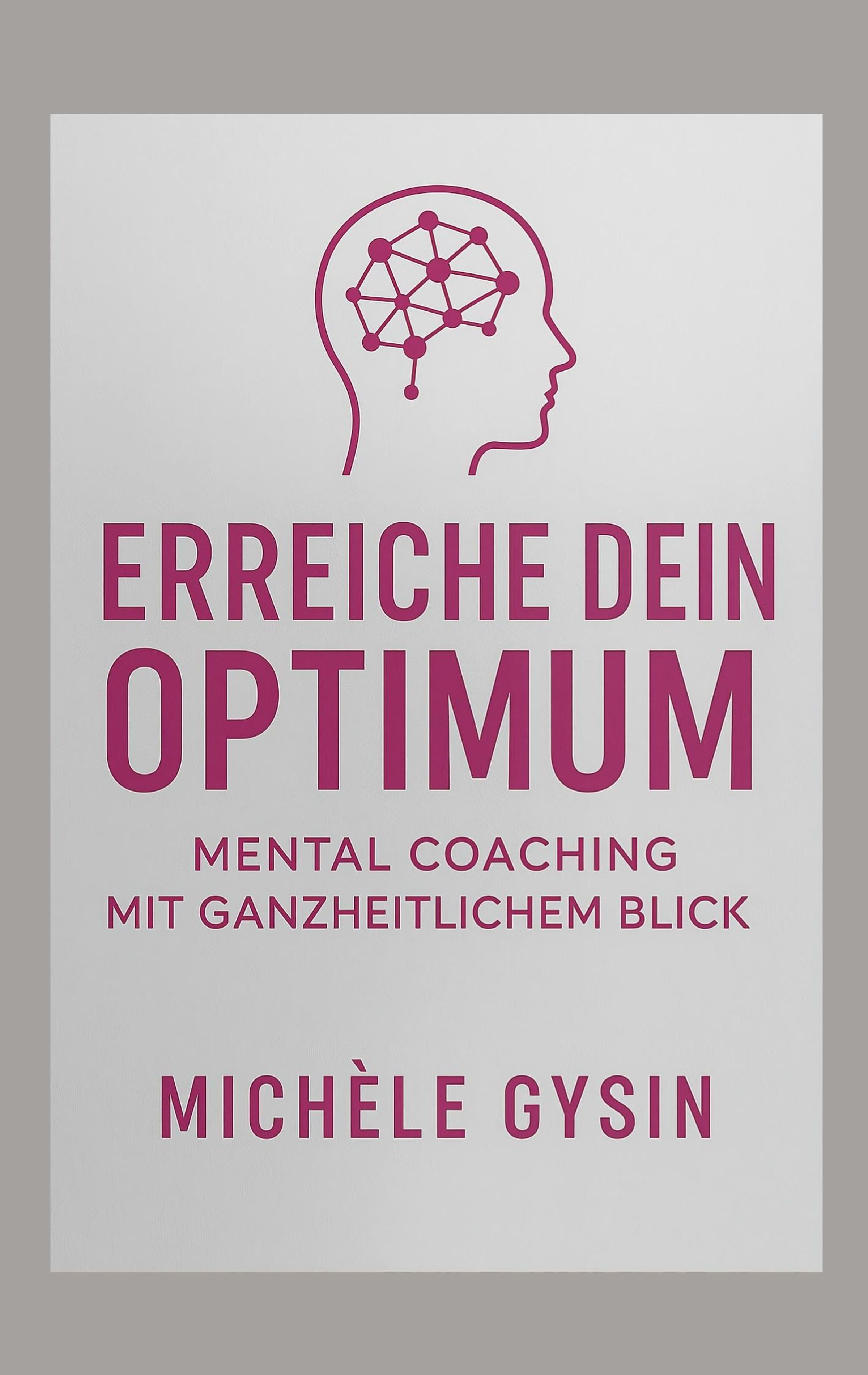 "ERREICHE DEIN OPTIMUM. Mental Coaching mit ganzheitlichem Blick. Michèle Gysin." Logo: Kopf mit Netzstruktur., Buch
