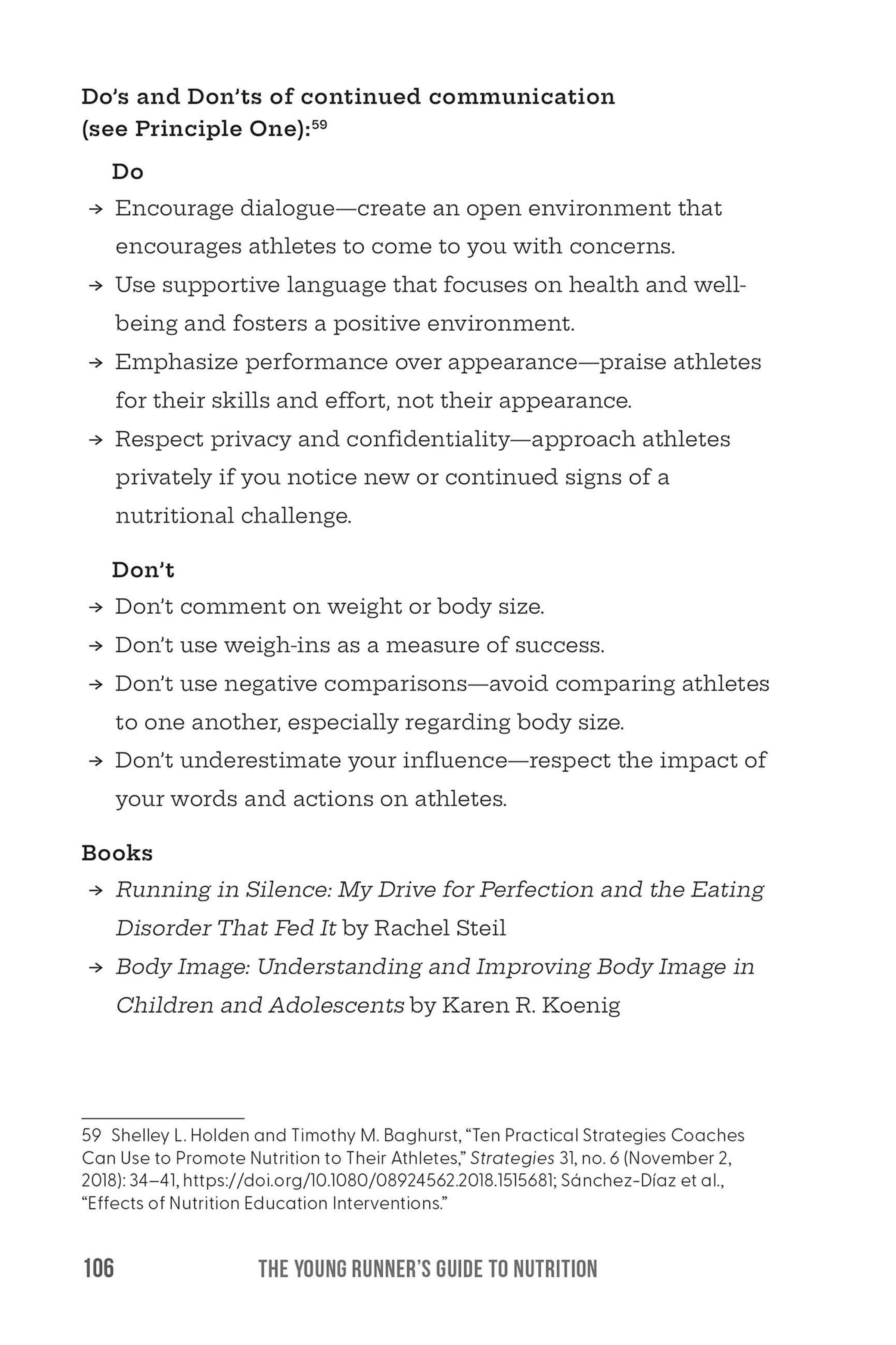 Change in sports nutrition for young runners needs to start with the entire community that supports them-their coaches, trainers, and families. That's why The Young Runner's Guide to Nutrition also includes resources for coaches on how to integrate nutrition education into their training programs and content for parents on how to foster good nutrition at home that will support the needs of their young runner through meal planning, cooking, and conversation.