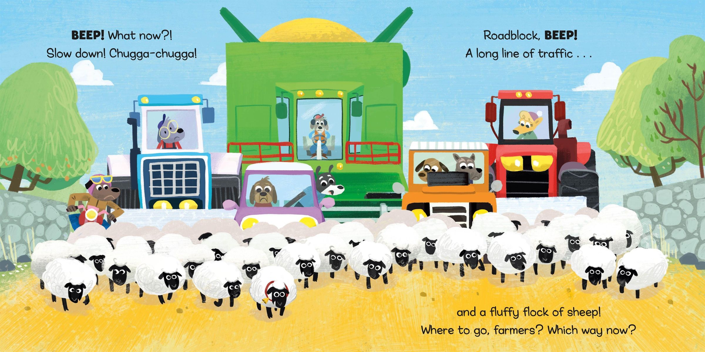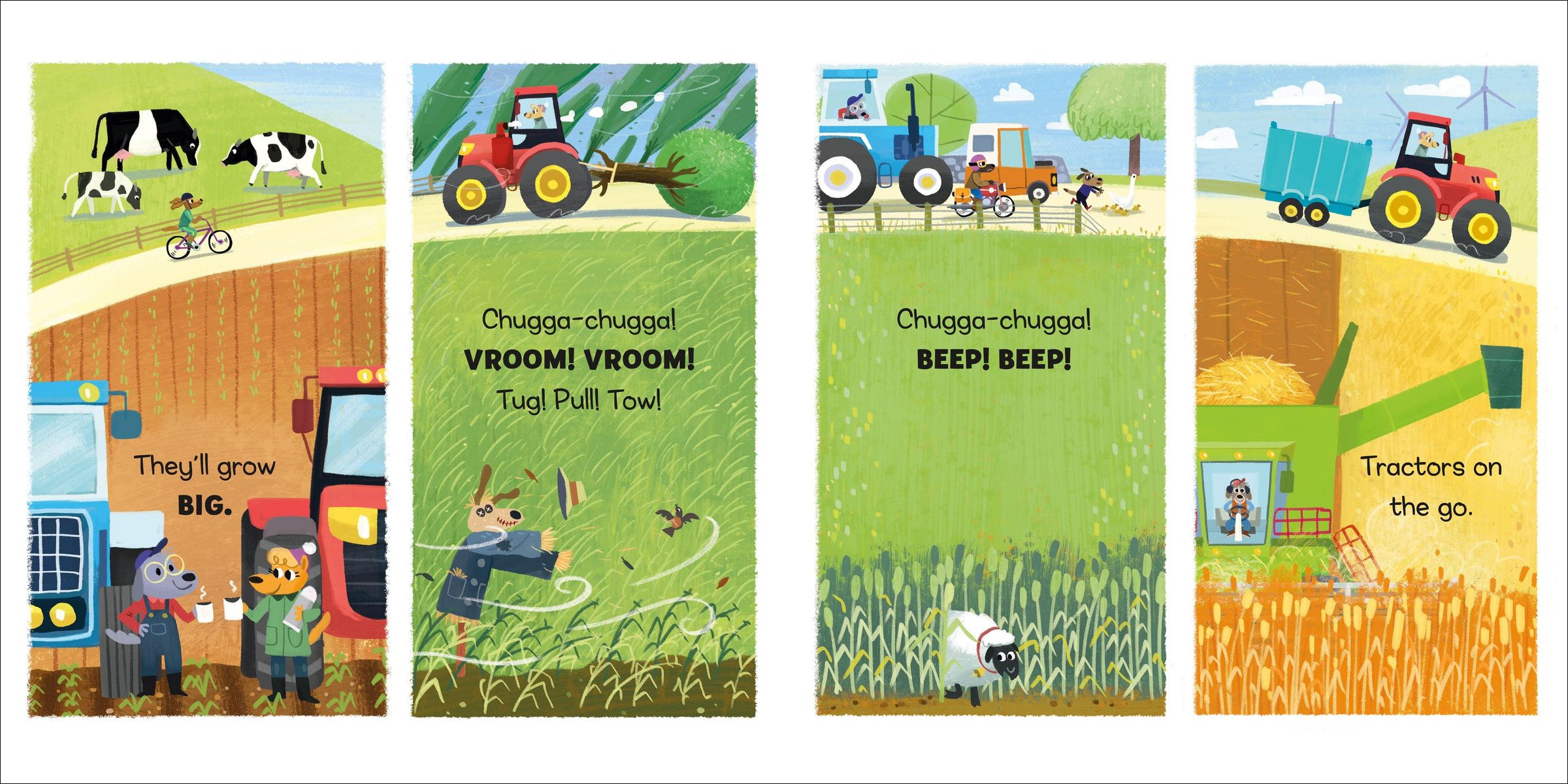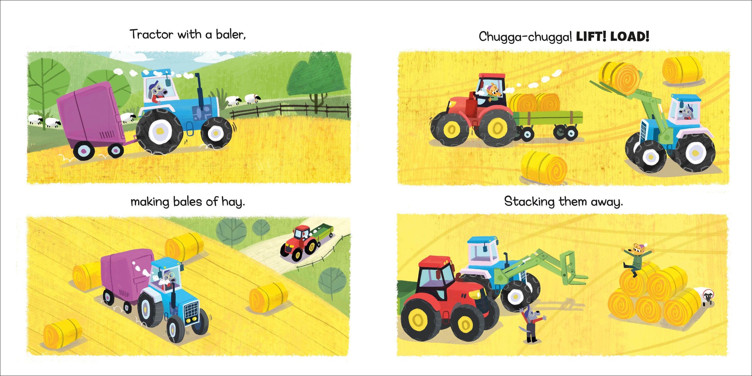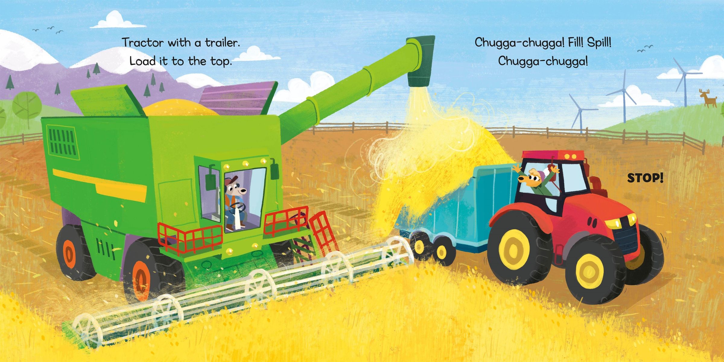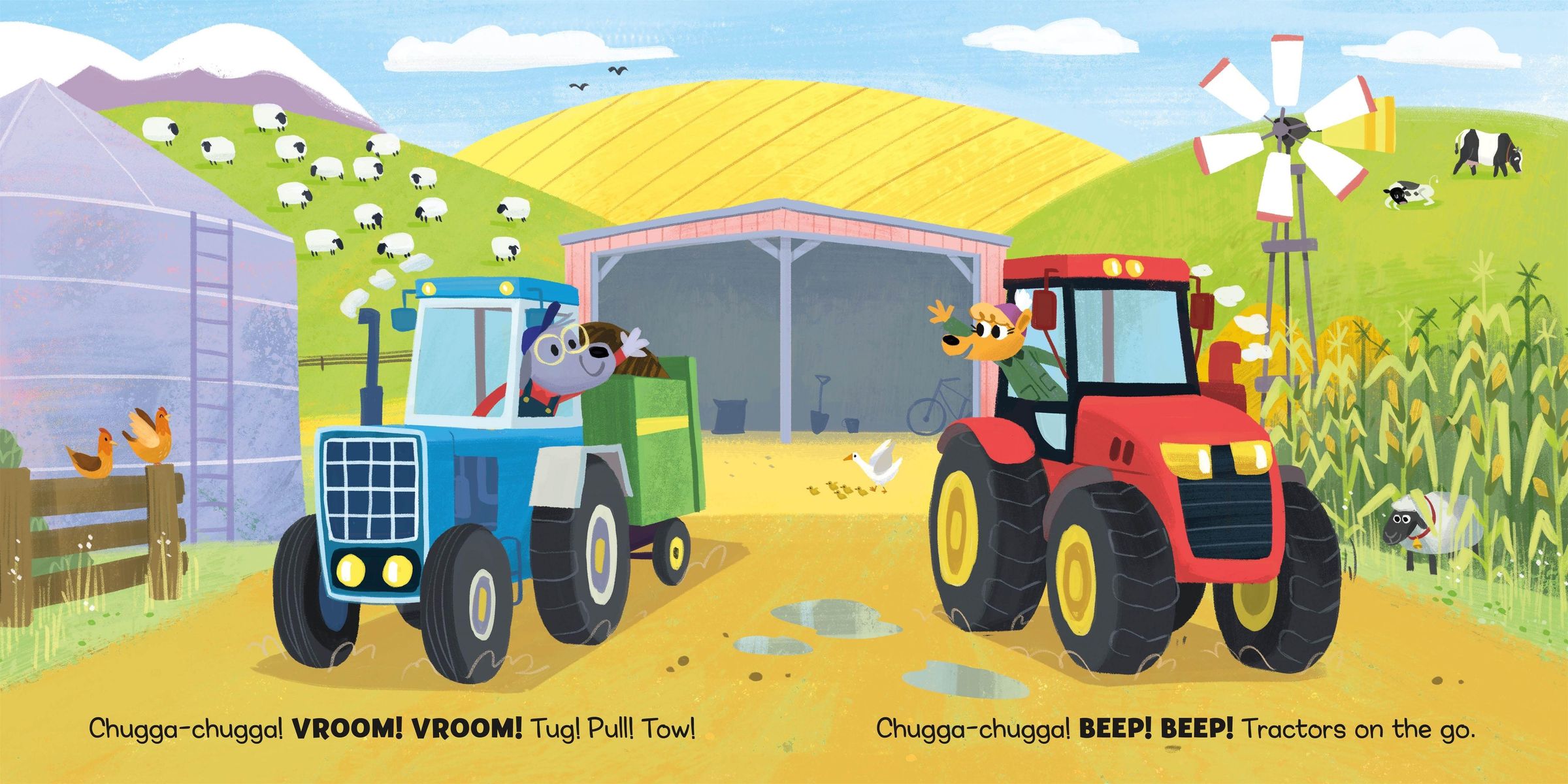Rev up your engines for a farmyard adventure with tractors and their doggy drivers! This picture book on oversized card stock is tailor-made for little readers and a perfect gift for vehicle-loving kids and new parents. Perfect for fans of Tractor Mac, Little Excavator, and Good Night, Good Night Construction Site.
