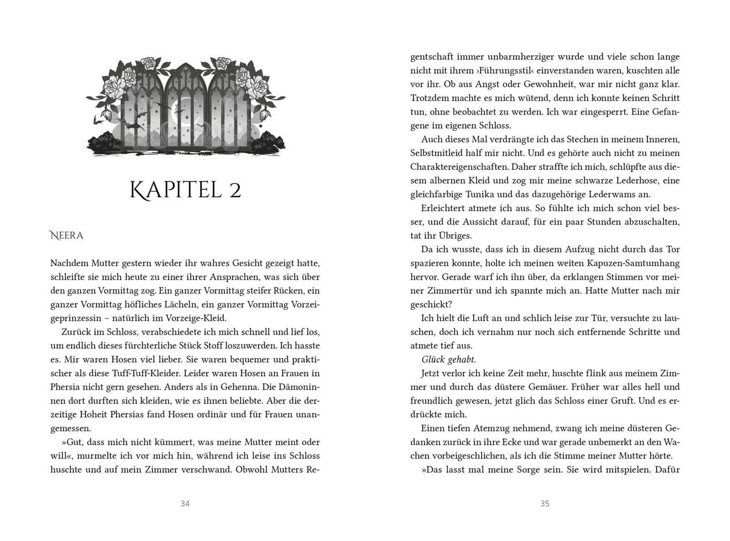 Das Reich Phersia erstarrt in ewiger Kälte, doch die wahre Gefahr für Prinzessin Neera sind die dunklen Pläne ihrer Mutter. Ausgerechnet mit dem Dämonenprinzen Ciarán möchte sie ein Bündnis schließen, dem Mann, dessen Mutter Asmodea einst den Fluch sprach, der Neeras Heimat mit Eis überzog. Eine alte Prophezeiung bindet Ciaráns und Neeras Schicksale aneinander. Indes rückt die Dunkelheit näher und durch einen verzauberten Spiegel wirkt die gebannte Königin Asmodea ihre zerstörerische Magie ...