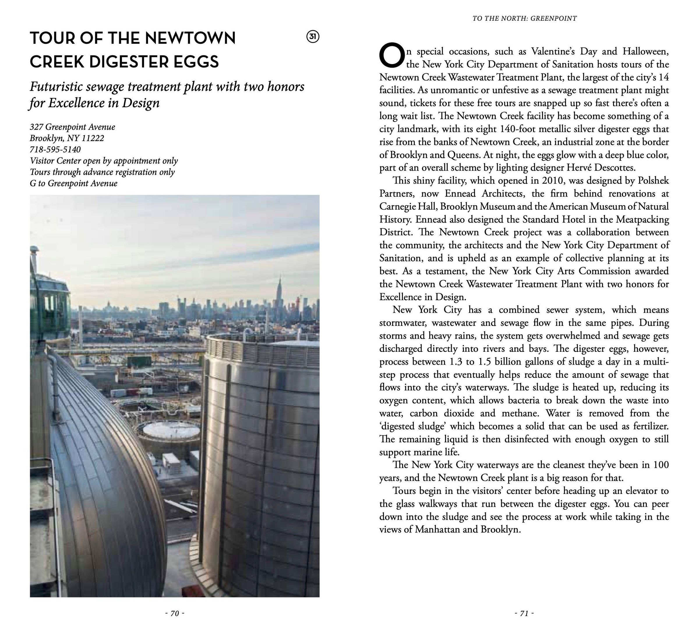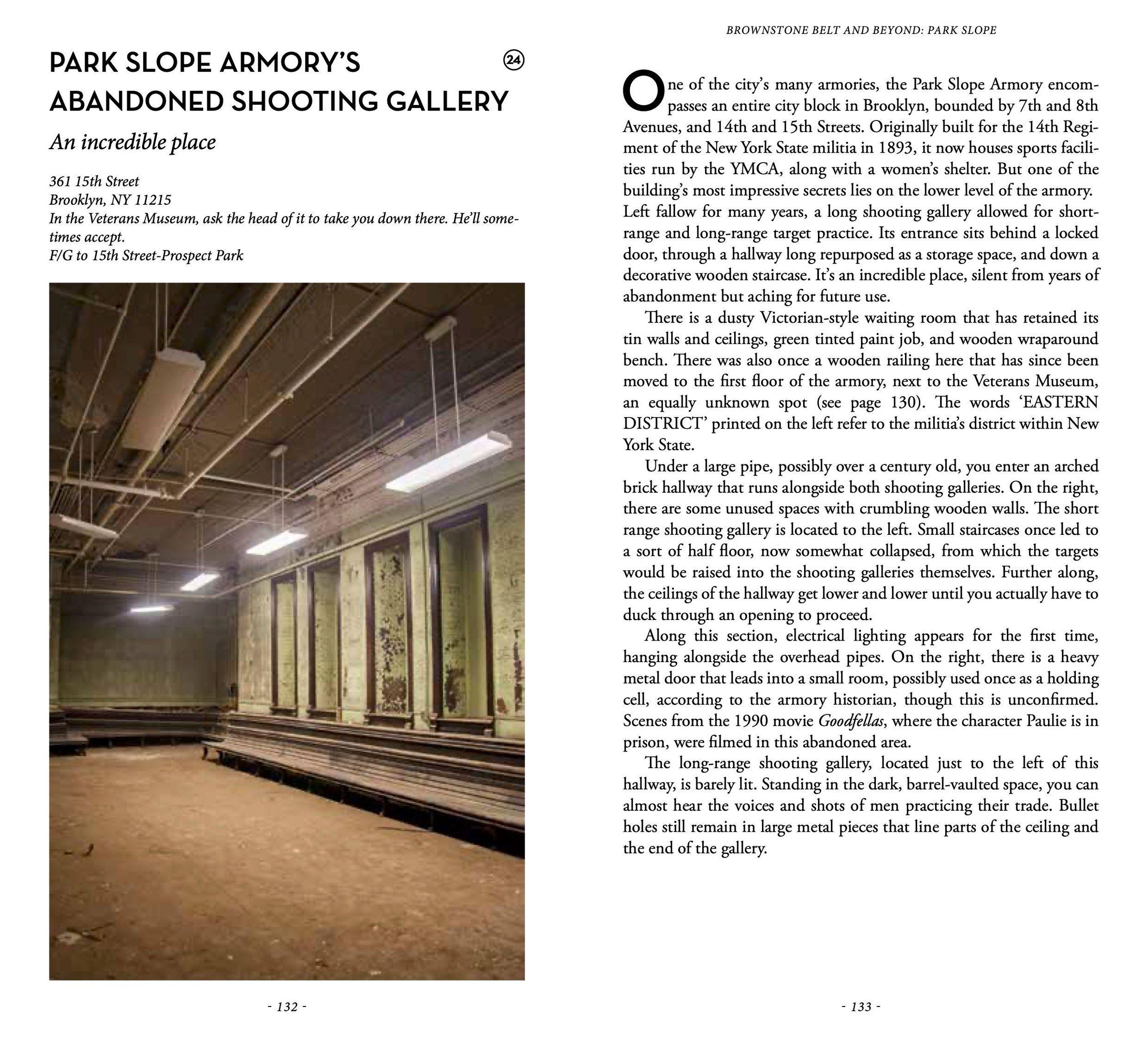 Secret Brooklyn One of the weirdest and most glorious museums this weird and glorious city has ever seen", one of only two trees that have been designated as New York City landmarks, the oldest building in New York City, the hobbit doors of Dennet Place, a park with only one tree, learn how to breathe fire, swallow swords, hammer a nail into your skull and charm a snake, the oldest subway tunnel in the world, world's smallest Torah, a secret museum built into the hallway of a Williamsburg apartment, a farm inside Domino Sugar factory site, world's first commercial rooftop vineyard ...