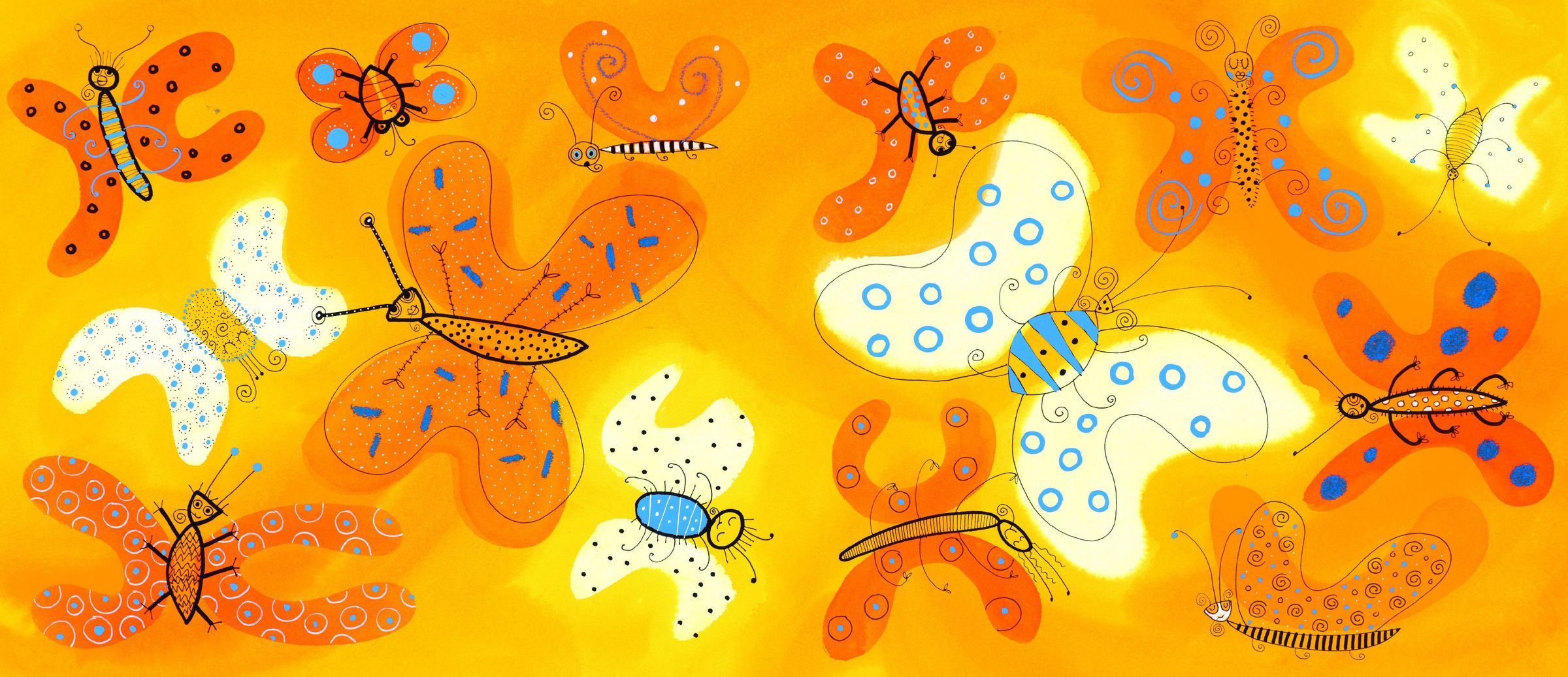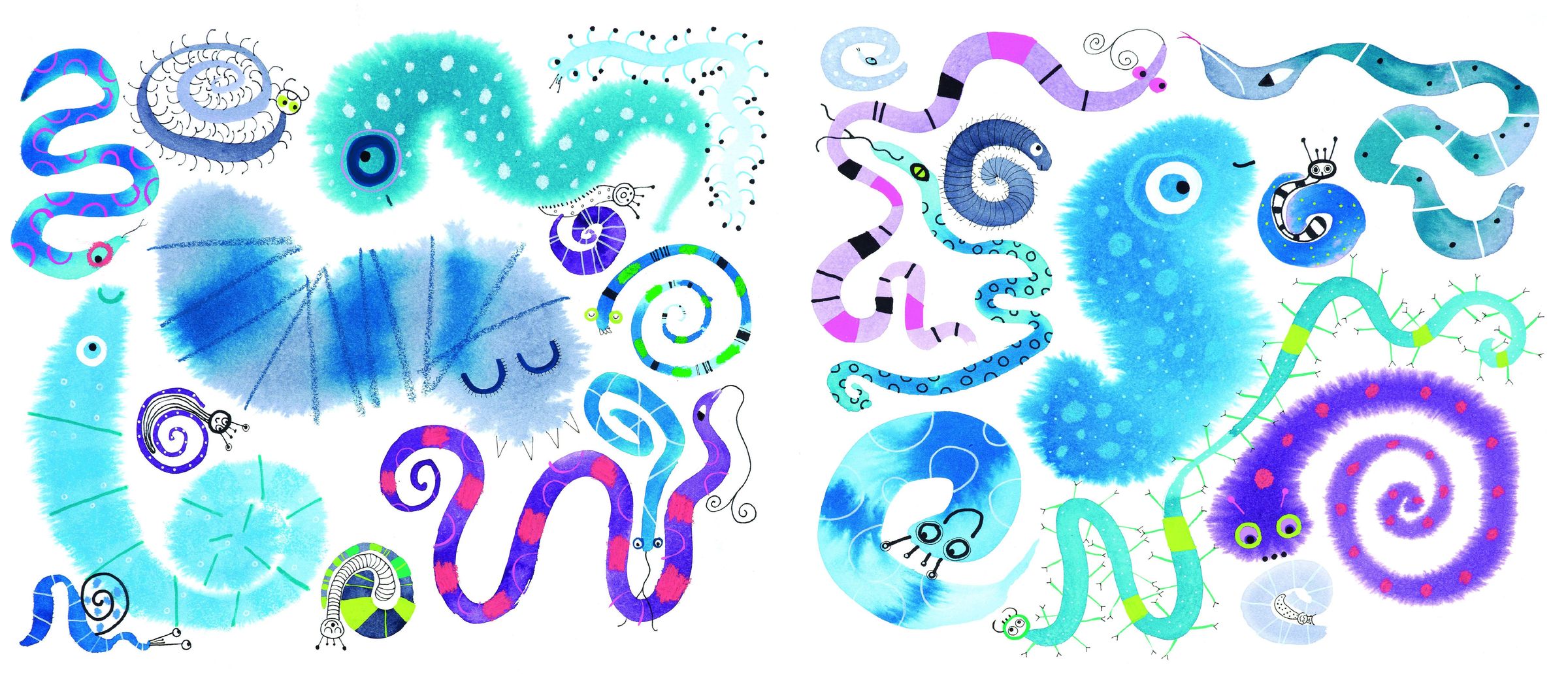Öffne die eingeklappten Seiten und lande in einer Welt, in der sich runde und fließende Formen in originelle, fantasievolle Tiere verwandeln. Verträumte Schmetterlinge flattern über die Seite, Schnecken springen freudig herum und ein putziges Eichhörnchen lächelt zufrieden im Schlaf. Ihr freundlicher und sanftmütiger Charakter passt sehr gut zu der runden Form. Ein Buch, das man immer wieder anschauen kann, weil man jedes Mal etwas Neues entdeckt.