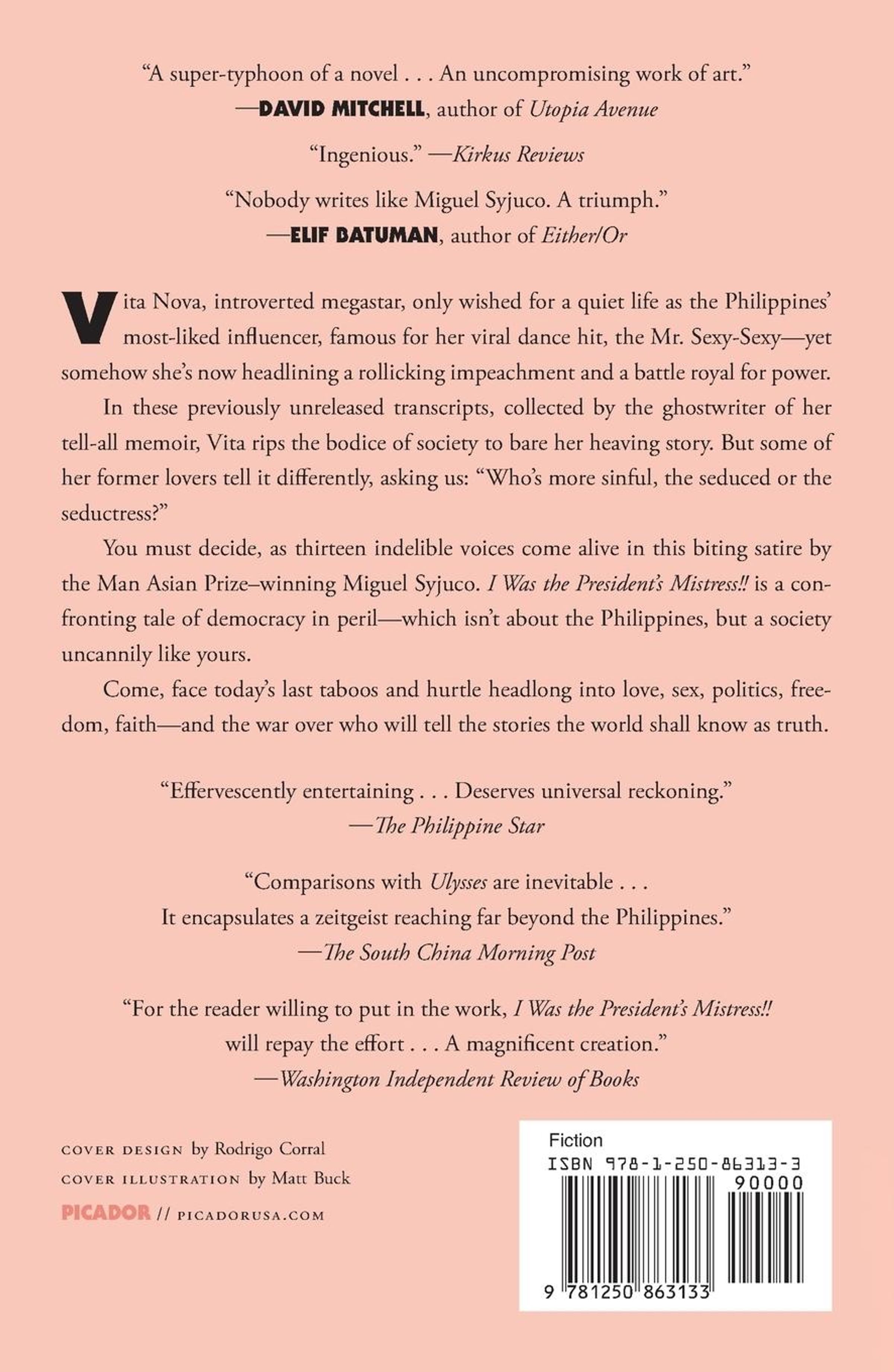 From Miguel Syjuco, the winner of the Man Asian Literary Prize for Ilustrado , I Was the President's Mistress!! is an unflinching satire about power, corruption, sex, and all the other topics you were told never to discuss in polite company.