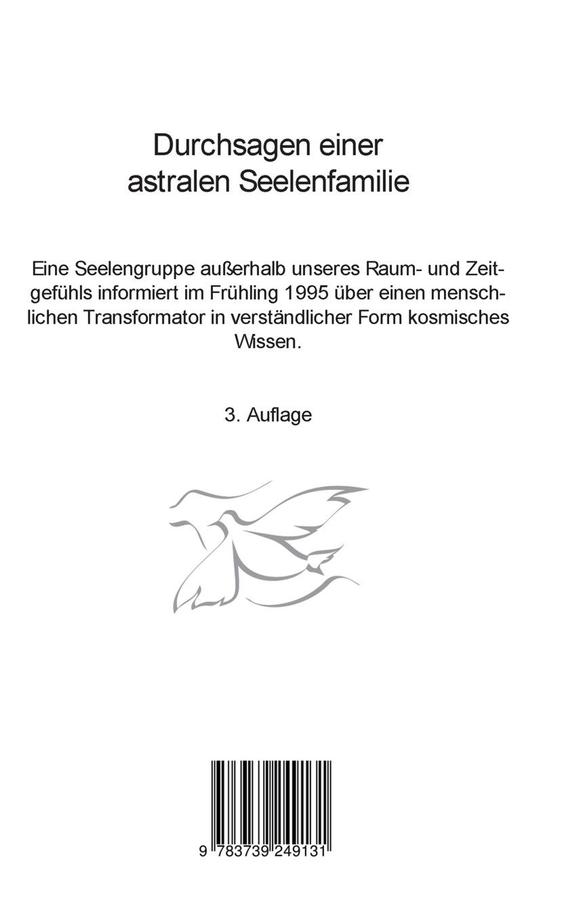 - Auflage. Eine Seelengruppe ausserhalb unseres Raum- und Zeitgefühls informiert im Frühling 1995 über einen menschlichen Transformator in verständlicher Form kosmische Informationen.