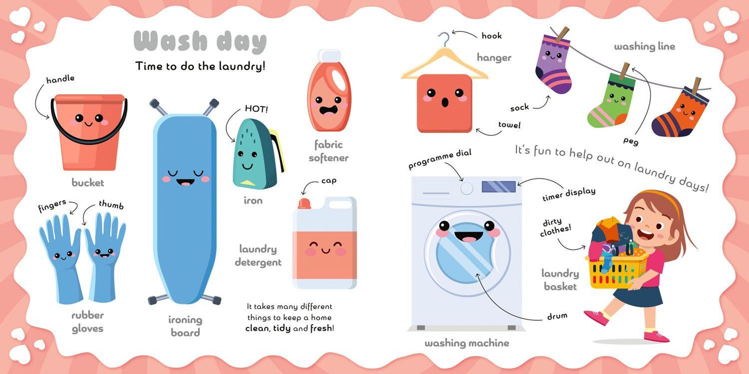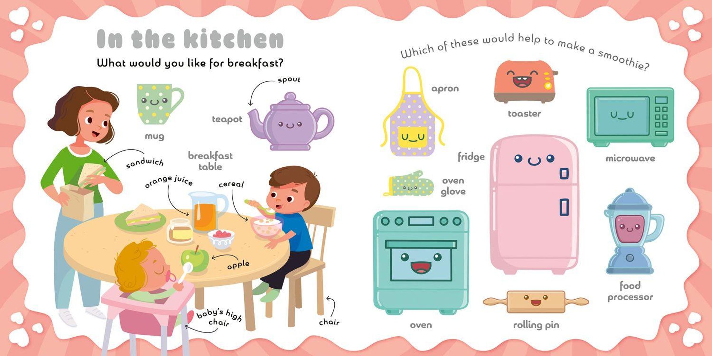 This fun little book, perfect for little hands to hold, introduces - in the gentlest way possible - key first vocabulary relating to objects, machines, rooms and places found in the home.