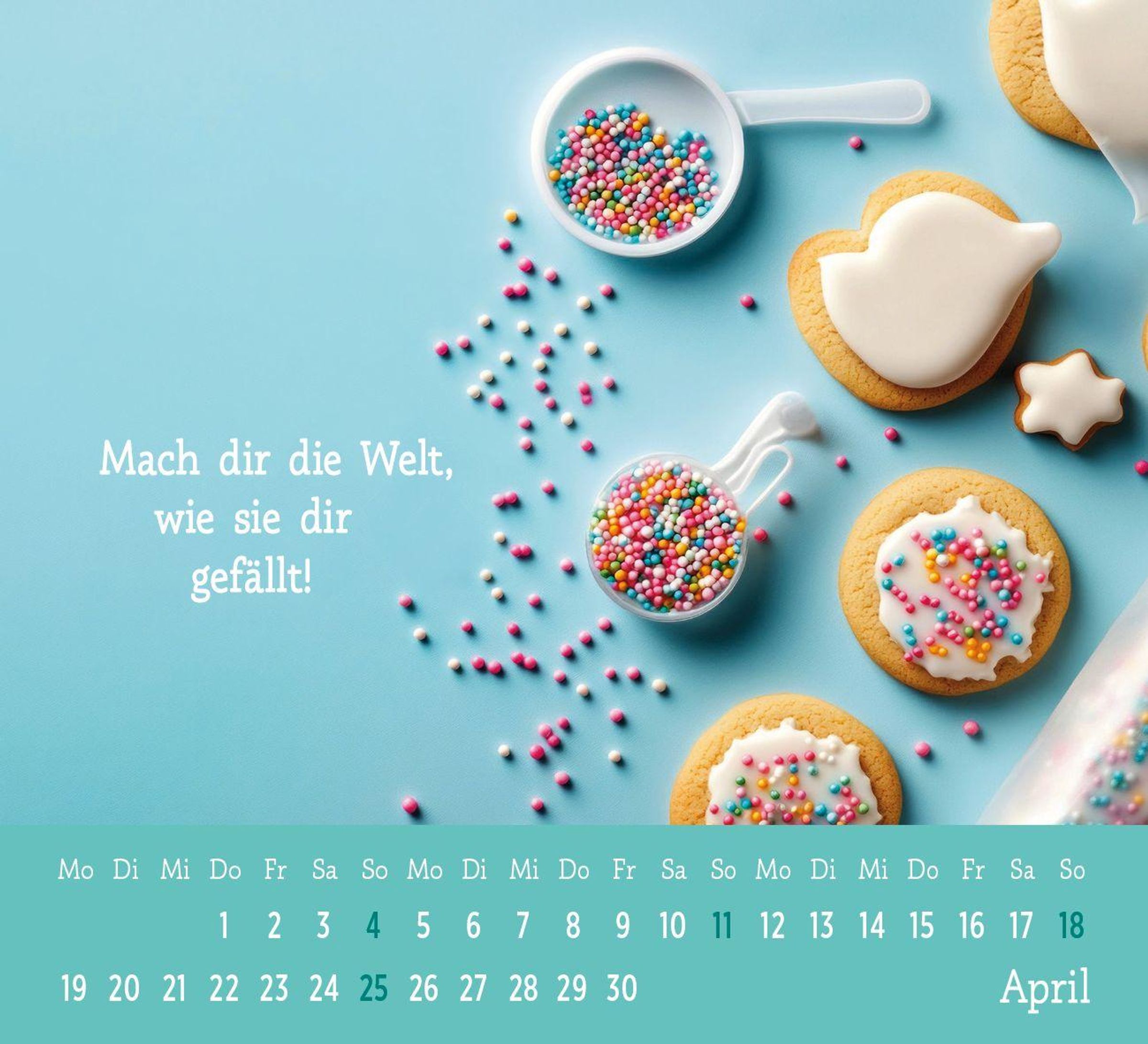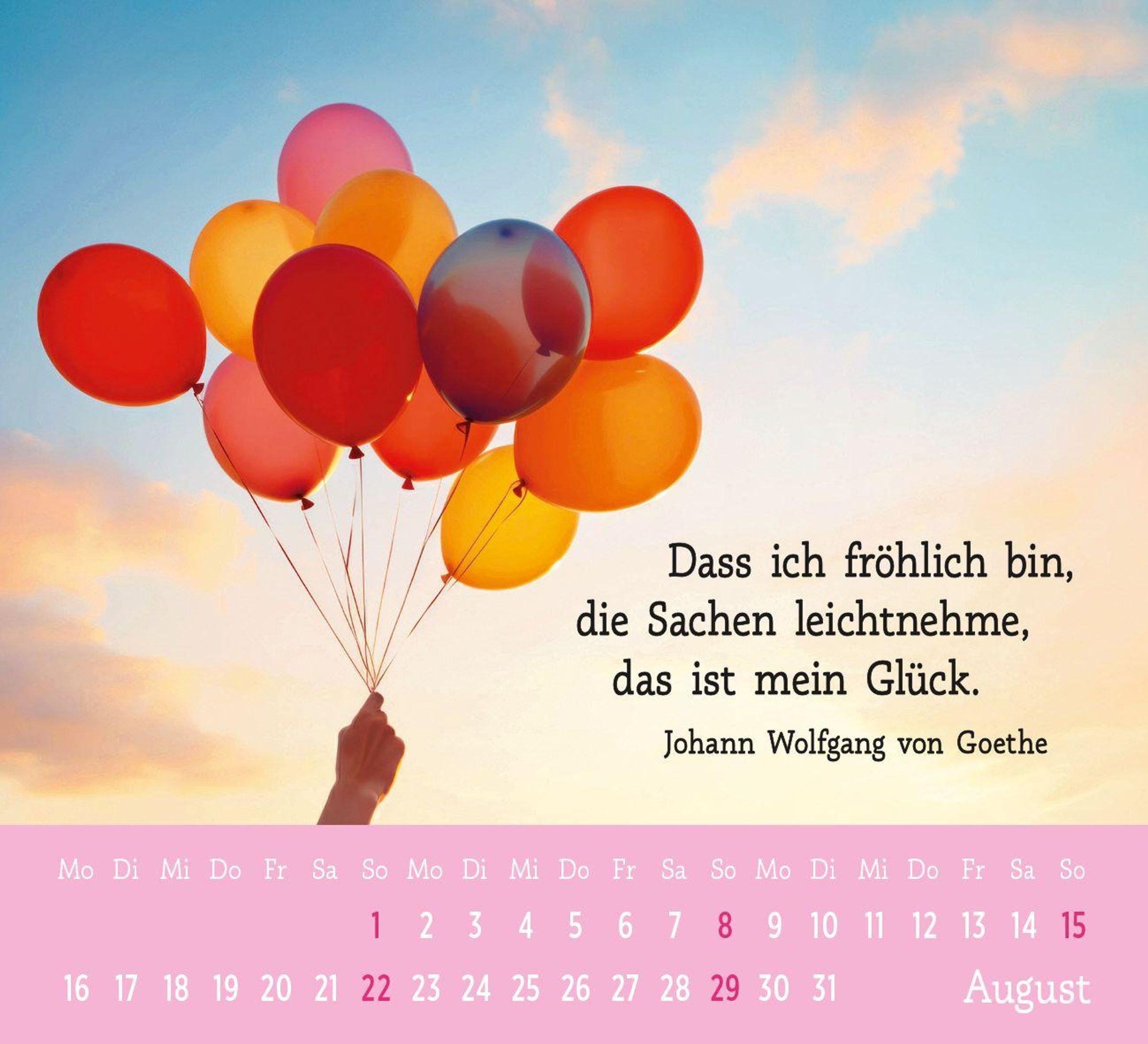 Gute Laune für das Jahr 2027: Der Mini-Kalender Der kleine Gute-Laune-Kalender 2027 zum Aufstellen steckt voller Lebensfreude und hilft mit farbenfrohen Fotos und inspirierenden Zitaten und Wünschen dabei, jeden Tag mit einem Lächeln zu beginnen . Ob im Büro oder zu Hause, der kleine Gute Laune-Kalender findet überall ein Plätzchen und bietet auf den Rückseiten der Kalenderblätter auch noch Platz für Notizen, Geburtstage oder andere Termine. Als kleines Geschenk oder Mitbringsel macht der Tischkalender mit Monatskalendarium garantiert Freude.