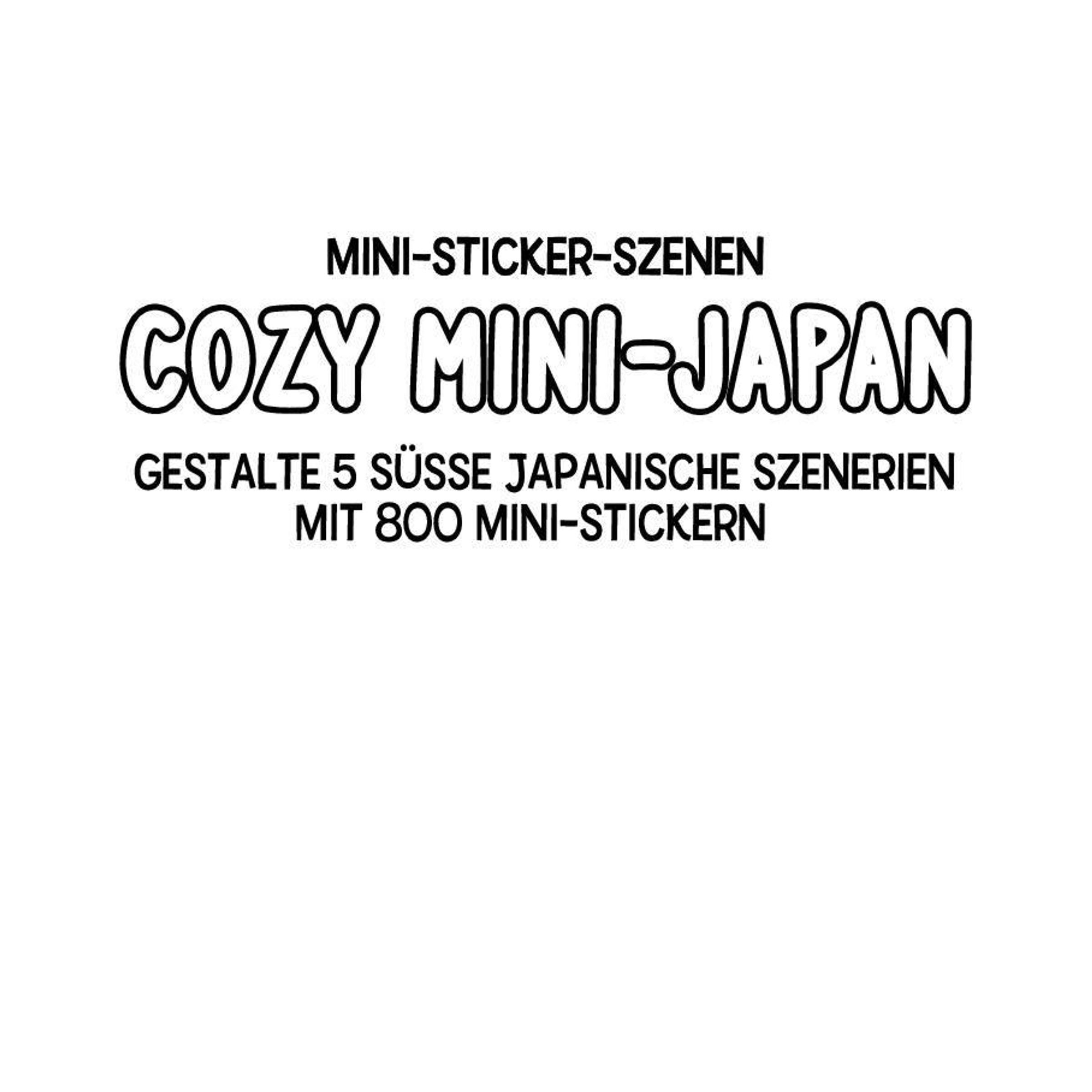 Nimm dir eine kleine Auszeit vom hektischen Alltag und sticker dich glücklich. Schaffe die perfekte kleine japanische Welt und gestalte 5 süße Szenerien im Kawaii-Shop, im Restaurant, im Tempel, bei der Kirschblüte und in einem japanischen Zuhause. Auf 15 herausnehmbaren Stickerbögen findest du 800 zauberhaft illustrierte Mini-Sticker, die du mithilfe der beiliegenden Pinzette präzise auf die Vorlagen auftragen kannst. Kreiere deine ganz persönlichen Miniaturwelten in 3D oder nutze ein gestaltetes Beispielbild als Vorlage, um eine Miniaturwelt nachzubauen. Kombiniere Möbel, Kuscheltiere, Accessoires, leckere japanische Gerichte, Kirschbäume, Tempelanlagen und viele weitere liebevolle Deko-Elemente, um stimmungsvolle Szenen zu erzählen -- vom gemütlichen Sushi-Lunch im Restaurant bis zum stimmungsvollen Spaziergang unter blühenden Kirschbäumen. Perfekt zum Entspannen, für kreative Me-Time oder als originelles Geschenk für alle, die Miniaturen lieben. Entdecke die Magie der kleinen Dinge und erschaffe Welten, die dir ein Lächeln aufs Gesicht zaubern.