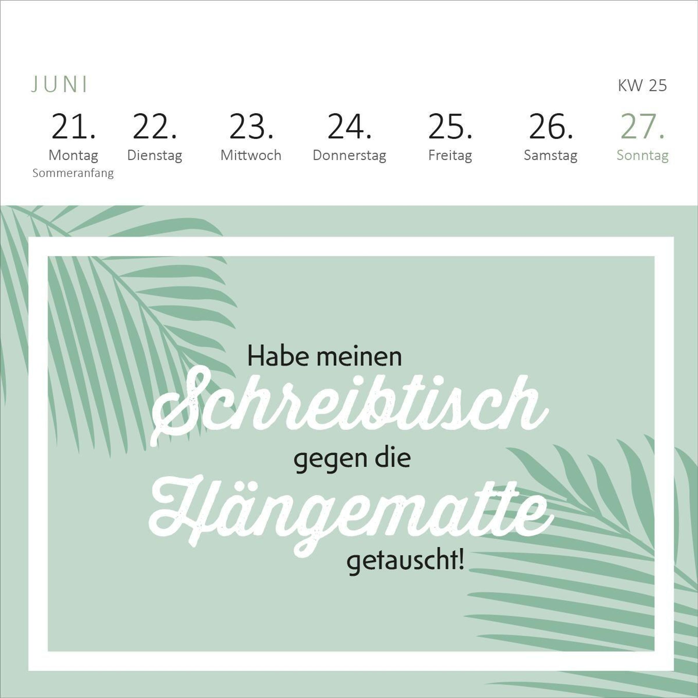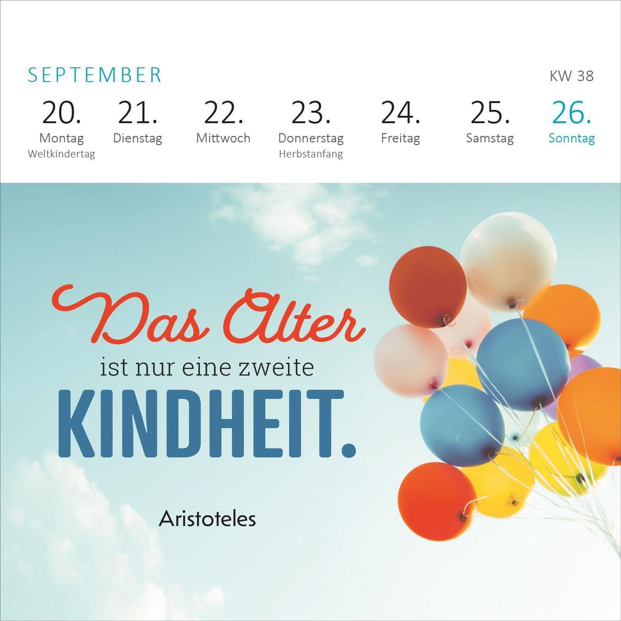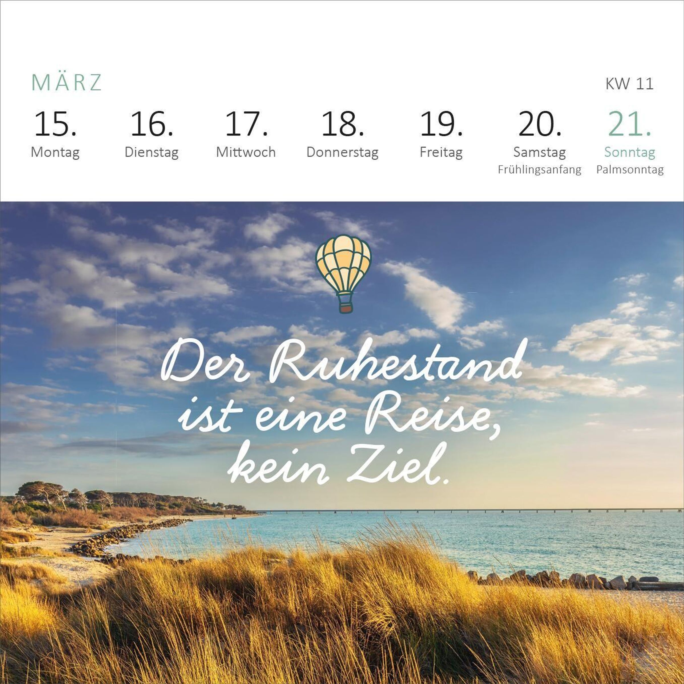 Wie nennt man Menschen, die montags glücklich sind? Rentner. Möchtest du jemandem positive Motivation im Ruhestand schenken? Dann ist dieser Kalender genau das Richtige! Der Tischkalender inspiriert mit frechen und humorvollen Sprüchen, knackigen Zitaten und charmanten Komplimenten über Alter, Rente, Freizeit und Freundschaft. Dank des praktischen Wochenkalendariums behält man immer den Überblick. Der Aufstellkalender ist perfekt geeignet für den Schreibtisch, die Küche oder das Wohnzimmer.