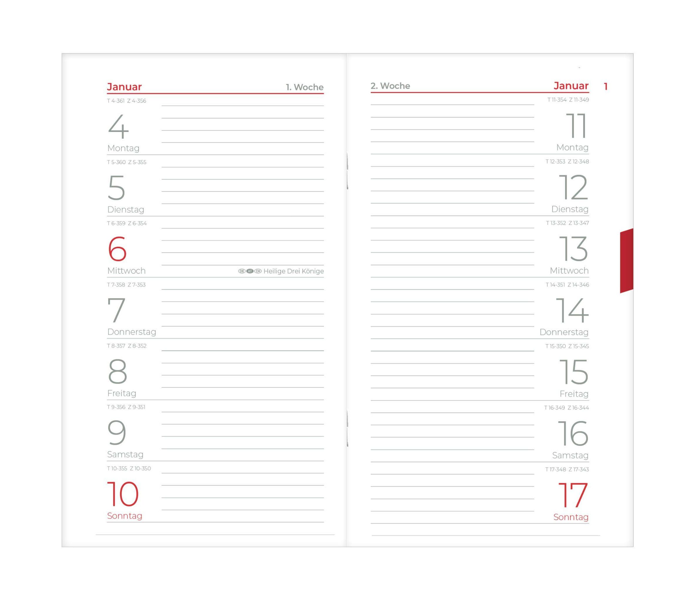 Übersichtliche Planung: 1 Woche pro Seite für schnelle Terminnotizen