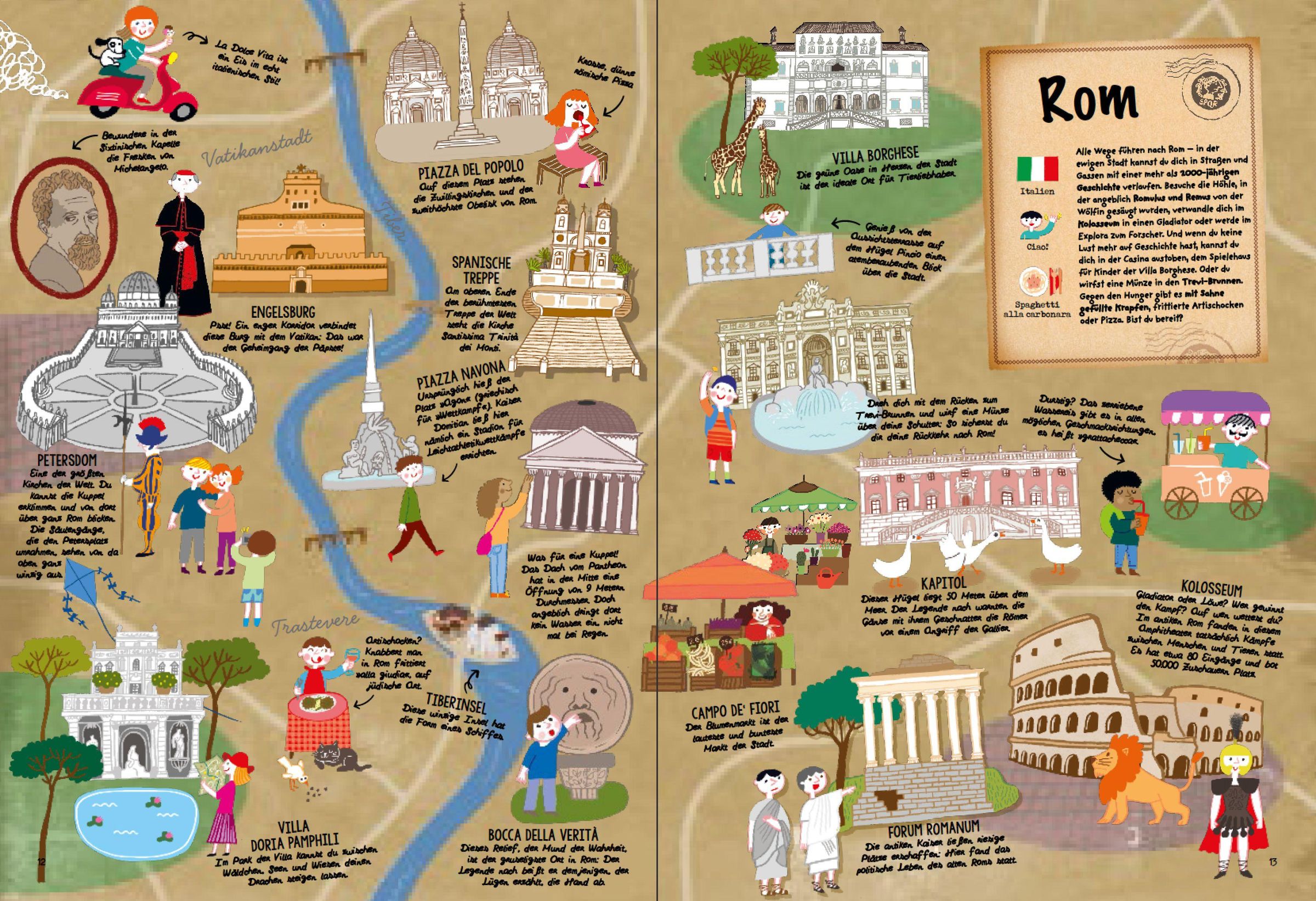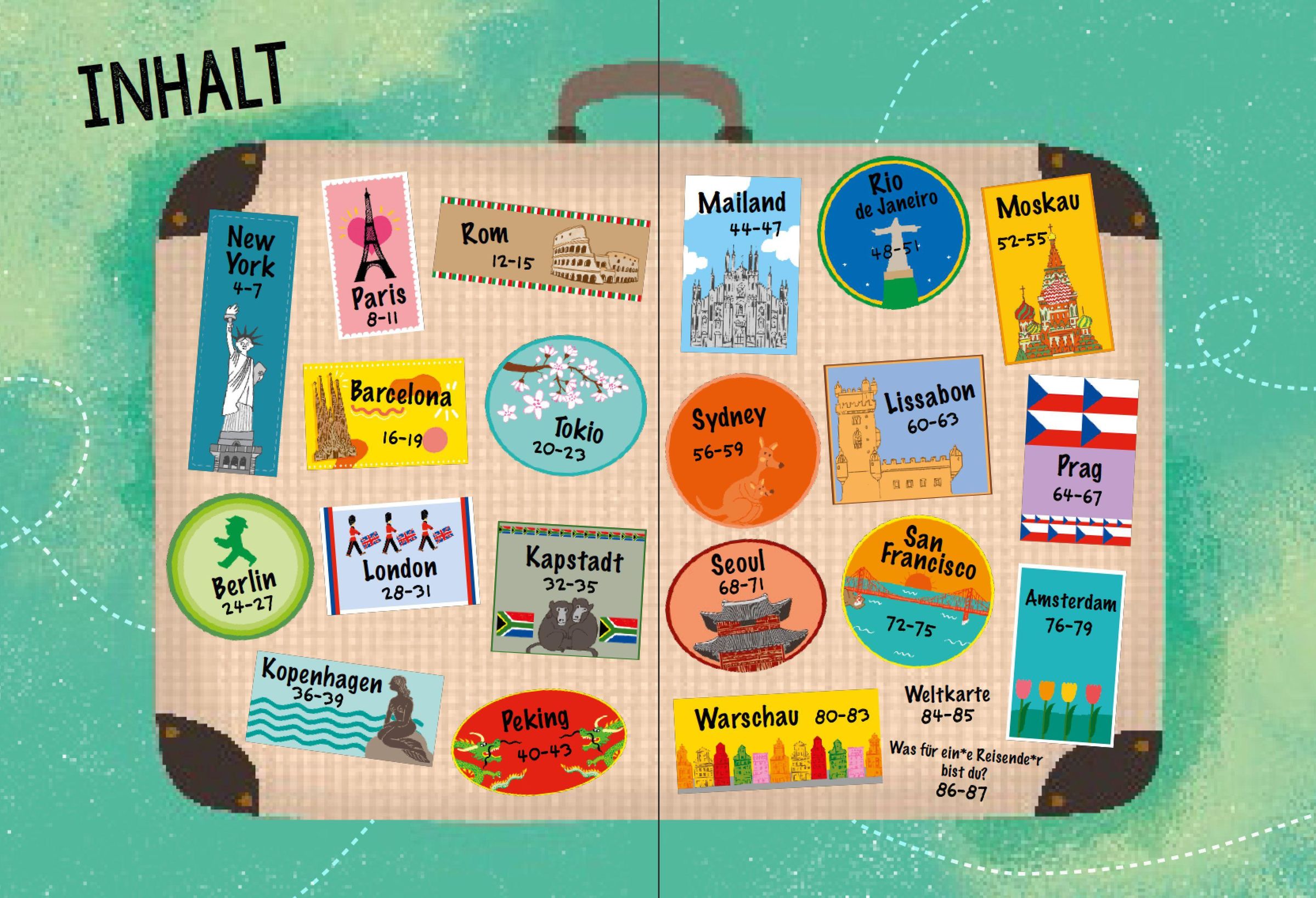 - Großformatiges Buch, liebevoll und wimmelig illustriert: Jede Stadt wird auf 4 Seiten vorgestellt